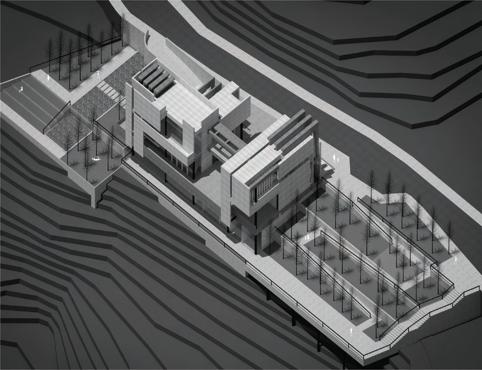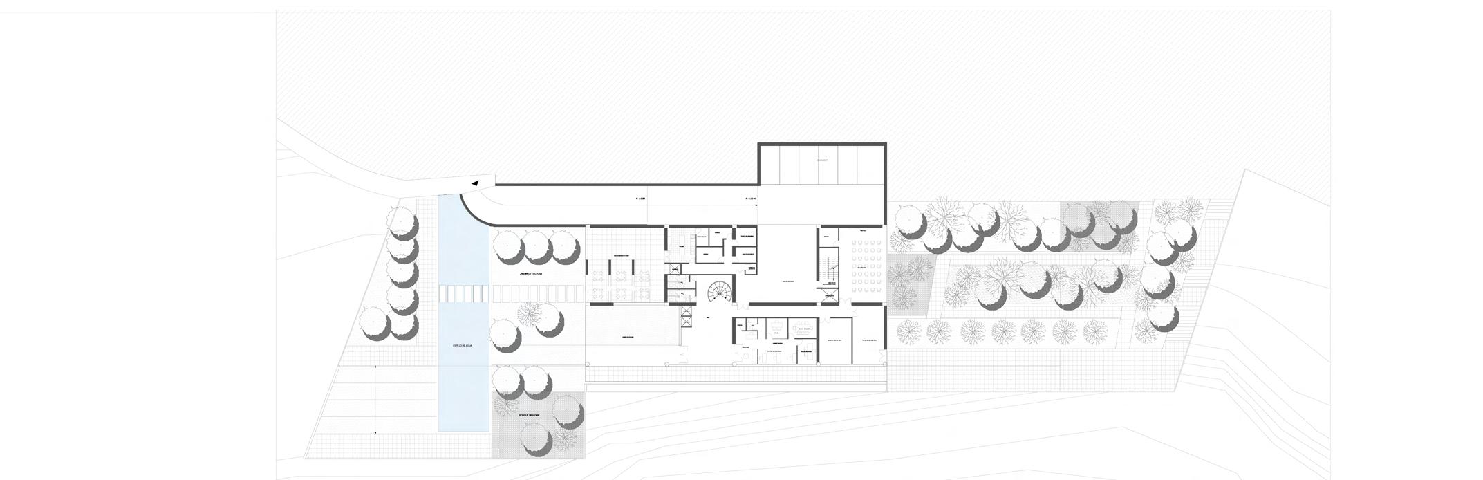 Por lo tanto, en el proyecto se busca una conexión entre ambientes distintos, mientras se atan al entorno paisajista por medio de terrazas, espacios de estancia y miradores. El espacio exterior se convierte en parte fundamental del proyecto al ser entendido como un espacio social, integrador de la comunidad. A su vez, el bosque, el jardín y los miradores se conciben como espacios que funcionan en conjunto con el programa, y son articulados por el edificio.
