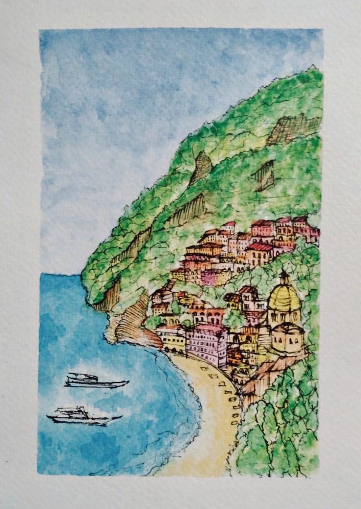 Positano, Italia. Acuarela con rotulador punta fina