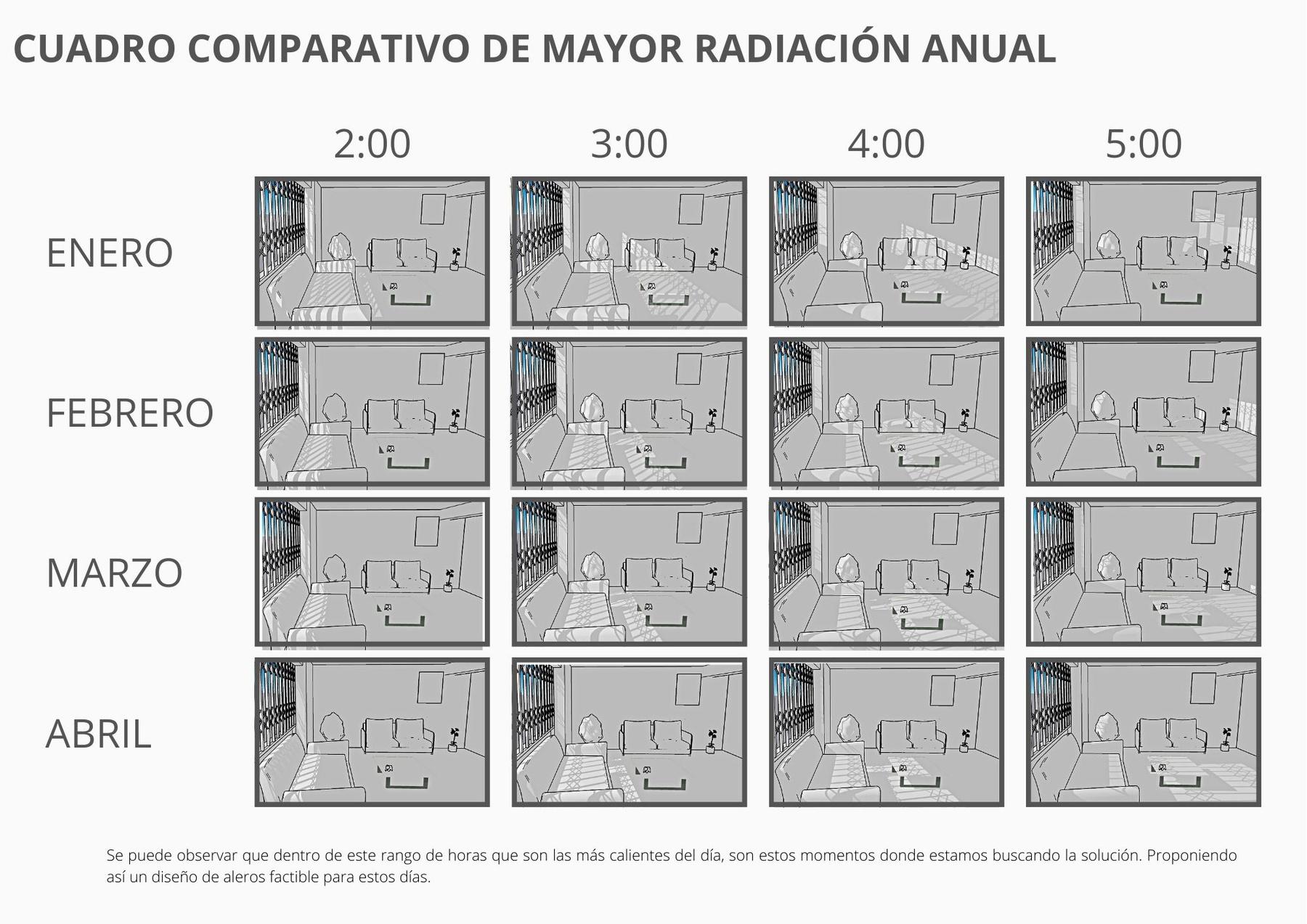 En esta actividad se tenía que proponer un tipo de alero como protección de la radiación solar de un espacio de la casa de uno de los integrantes del grupo donde la radiación sea más fuerte, para lograr proponer aleros efectivos que cumplan el objetivo de proteger el espacio.
