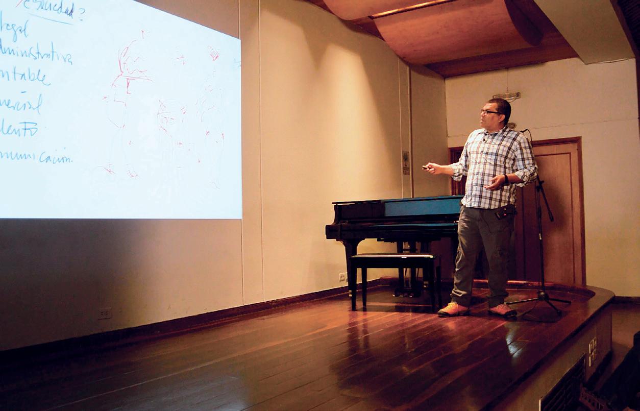 Fotografía de audiencia conferencia Sebastian Fernández, 2015, Equipo organizador, Tomado de archivo de Juan C. Morales.