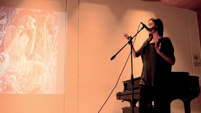 Fotograma de vídeo de conferencia Marcela Bolivar, 2015, Equipo organizador de EntreVistas, Tomado de archivo de Juan C. Morales.