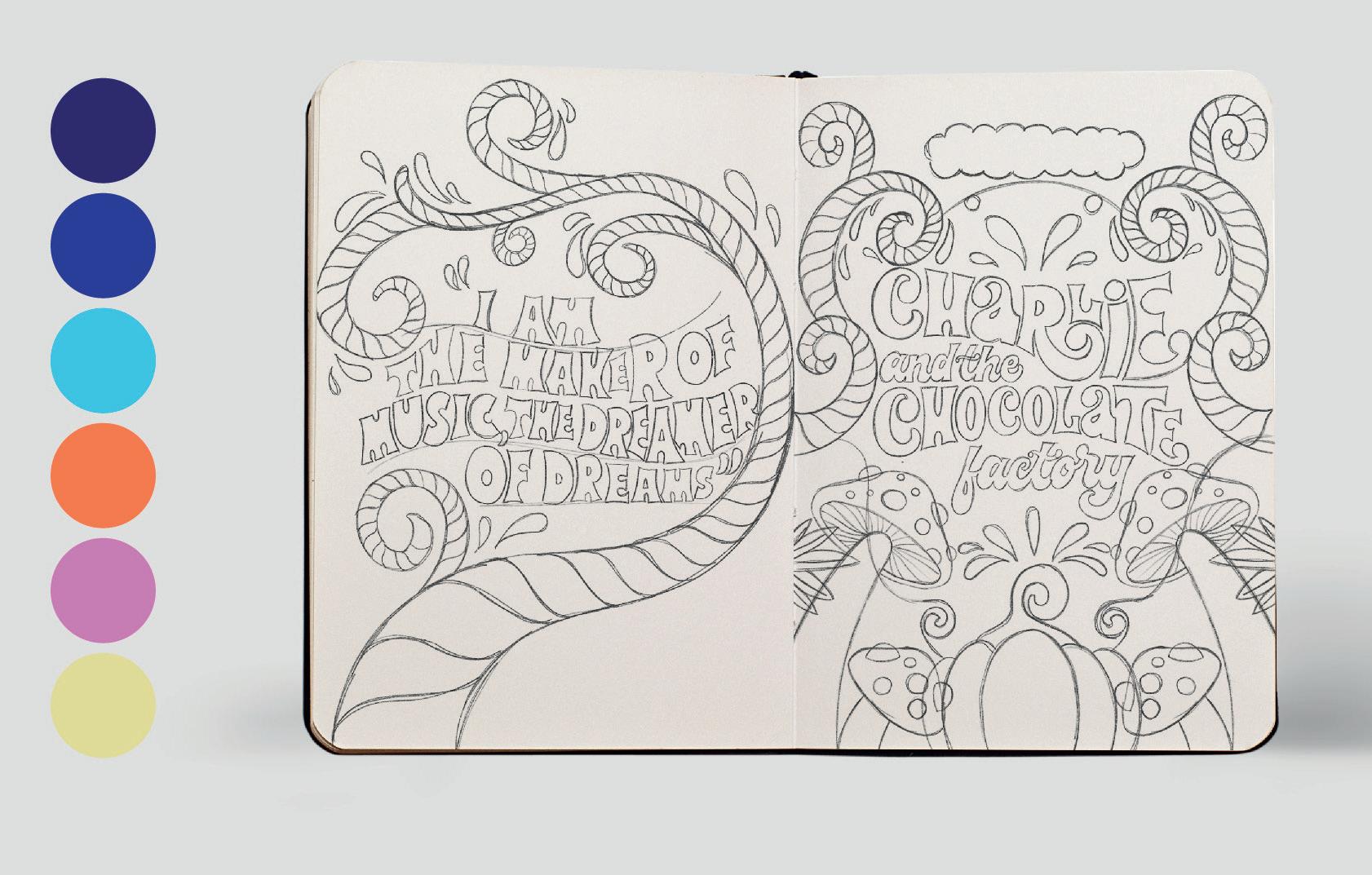 Imagen 13. Lettering+Illustration | Book set (Charley and the Chocolate Factory), Creado por Ana Moreno, 2020, Tomado de archivo de Juan C. Morales P.