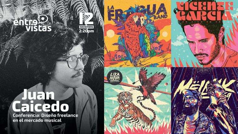 Juan Caicedo es un diseñador gráfico de Bogotá, destaca por su enfoque en la dirección de arte para proyectos musicales, eventos culturales y conciertos, demostrando una pasión por la música y la ilustración. Del mismo modo, Juan posee su propia banda para la cuál también crea y diseña posters, carteles promocionales y portadas de discos.