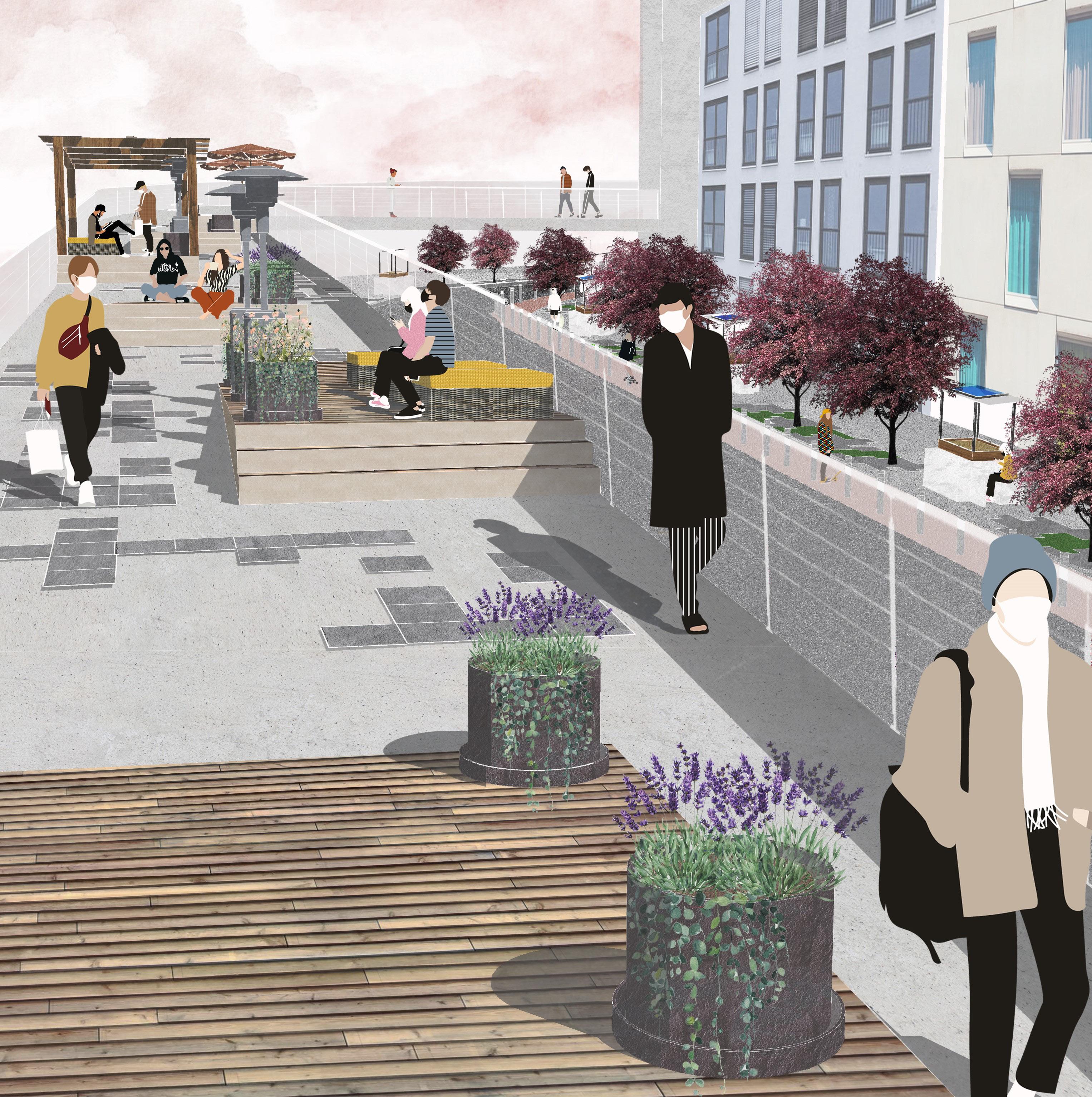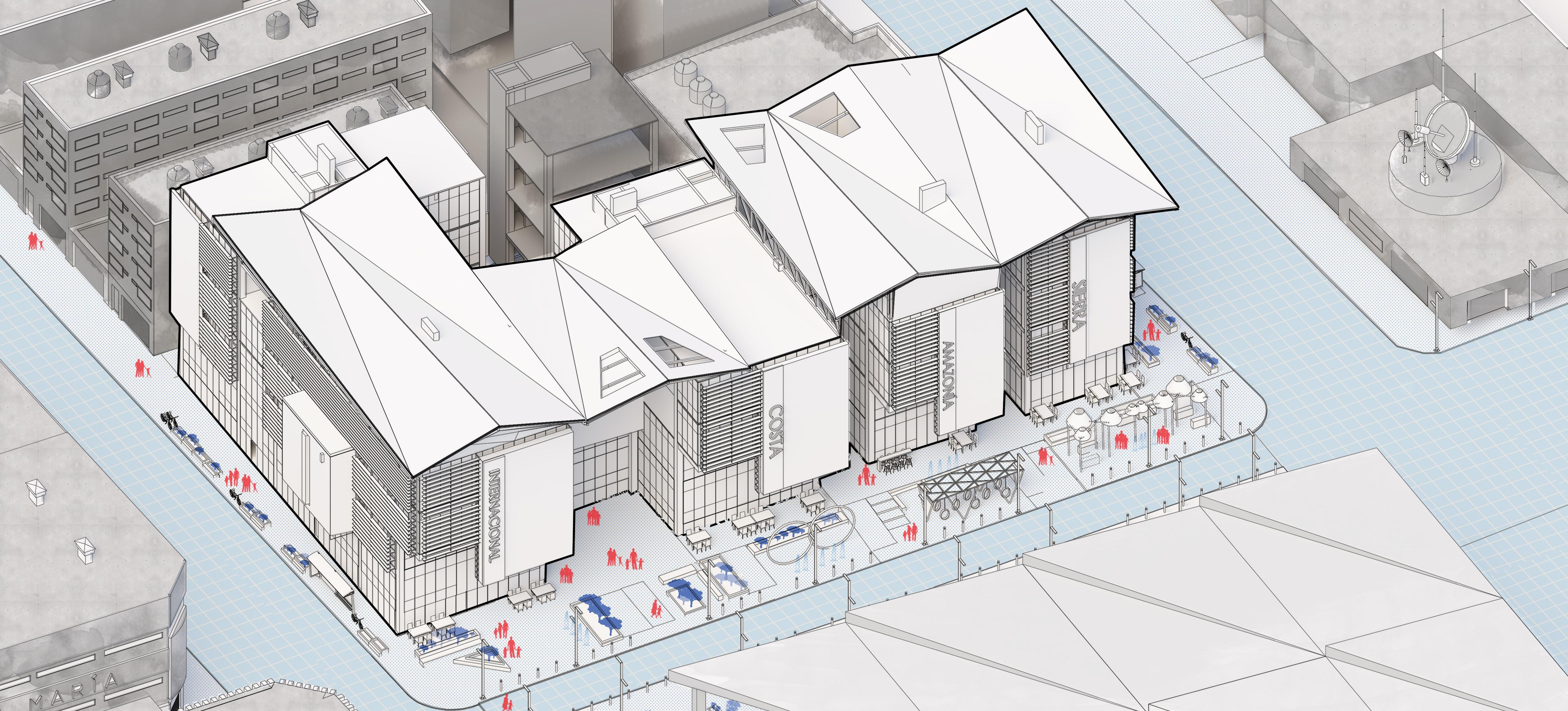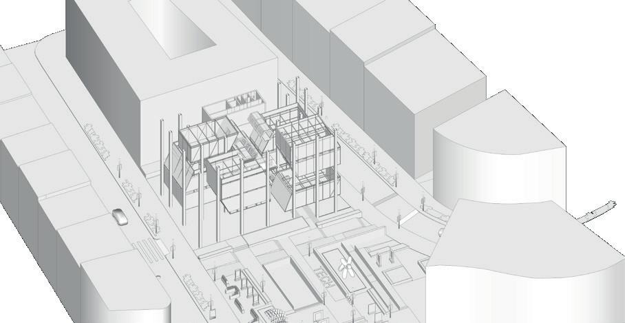 Mediante puentes, los módulos se van relacionando entre si. El proyecto se conecta con la zona, el espacio se vuelve uno solo con el exterior. Las actividades se integran con la comunidad