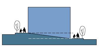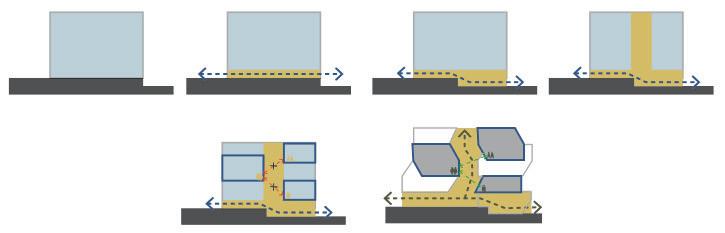 Conexión de los niveles entre calzadas mediante el uso de la planta basamental
