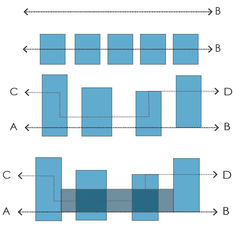 La agrupación de actividades permite establecer relaciones visuales y espaciales entre el objeto contenedor y el vacío que forma