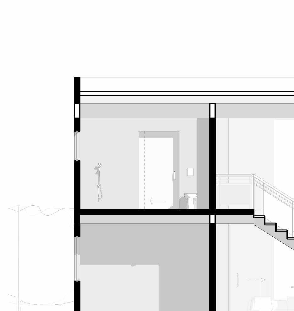 43 44 B A A B C D Cine en Casa Sala- Comedor 2,57 2,30 1,89 1,24 1 A Habitación PB10 10 m² Dormitorio PB11 m² Baño Máster PB12 Habitación PB13 Dormitorio de Servicio 3,65 5,15 5,15 Nivel Pq 0,00 Planta Alta 5,30 Planta Baja 2,45 Nivel Cubierta 8,15 1 2 3 4 3,12 2,30 2,57 8,00 2,85 2,85 5,70 54 m² Sala- Comedor PB04 79 m² Área Húmeda PB09 53 m² Doble Altura PB16 1 : 100 1 : 100 Corte A-A´ 3 Tabla de planificación de habitaciones Número Área Nivel Pq 0,00 Planta Alta 5,30 Planta Baja 2,45 Nivel Cubierta 8,15 A B C D 3,65 6,95 3,65 14,25 2,85 2,85 5,70 1 : 100 Corte B-B´ 4 Corte Longitudinal Corte Transversal