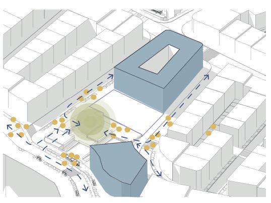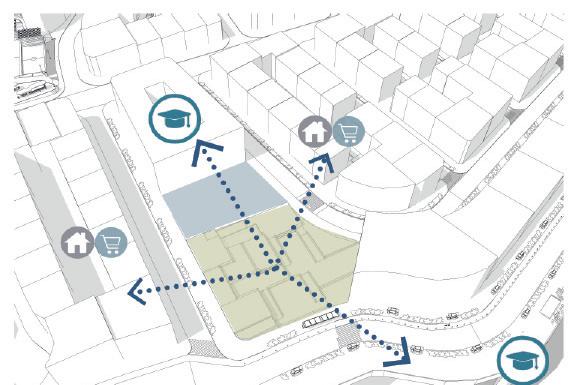 Se generan puntos de acceso desde las vías aledañas al proyecto, se plantea conectar de manera directa mediante accesos peatonales