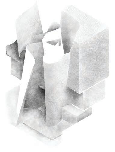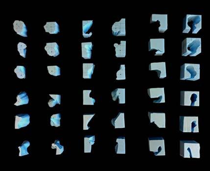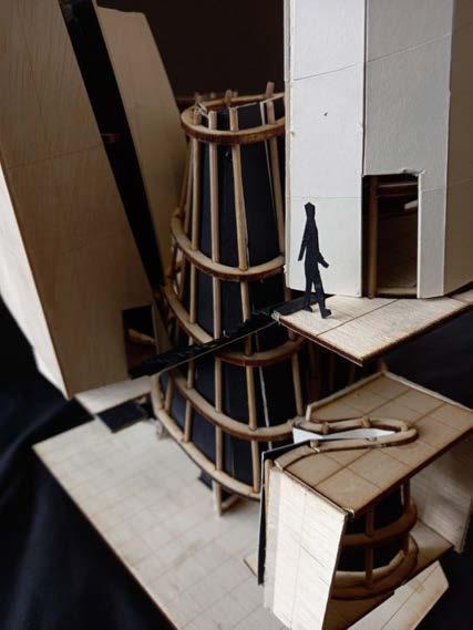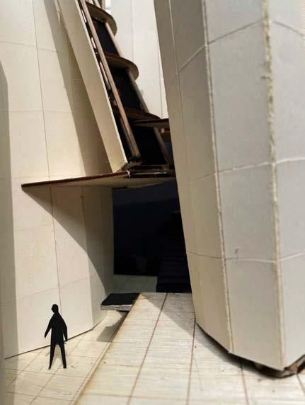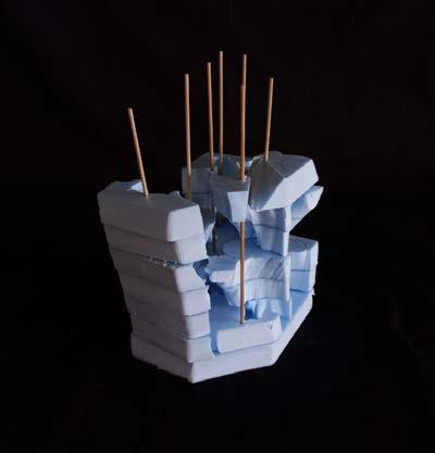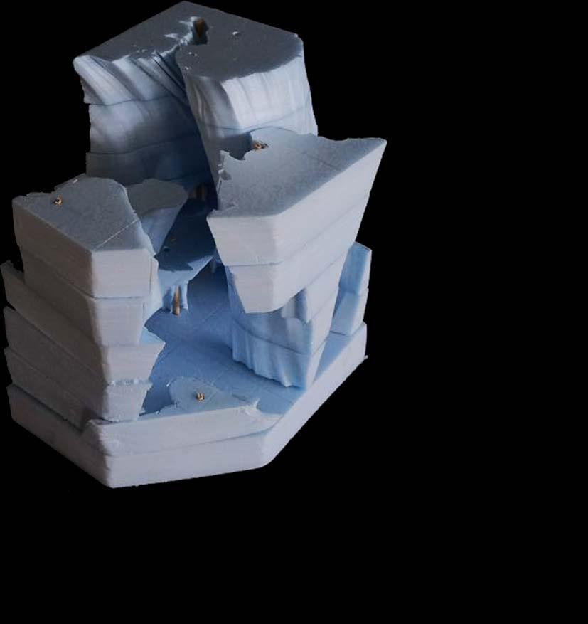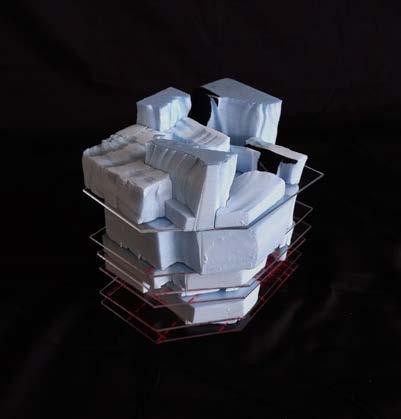 UP TO THIS POINT, EACH MODULE HAS BEEN ASSIGNED A PROGRAMME USING THE MATRIX. MOREOVER, SITE HAS BEEN ANALYSED AND DATUMS HAVE BEEN EXTABLISHED ACROSS HEIGHT. THUS, THE MODULES CAN BE COORDINATED ON SITE AND COMBINED AT THEIR RESPECTIVE POSITIONS. SEVERAL ITERATIONS OF THE RESULTING STEREOTOMIC MASSINGS WERE CREATED THROUGHOUT THE DESIGN PROCESS. EACH EVOLUTION GAVE INSIGHT AND CLARITY TO THE BASE CONCEPT, REVEALING BLINDSPOTS AND OPPORTUNITIES IN THE DESIGN.