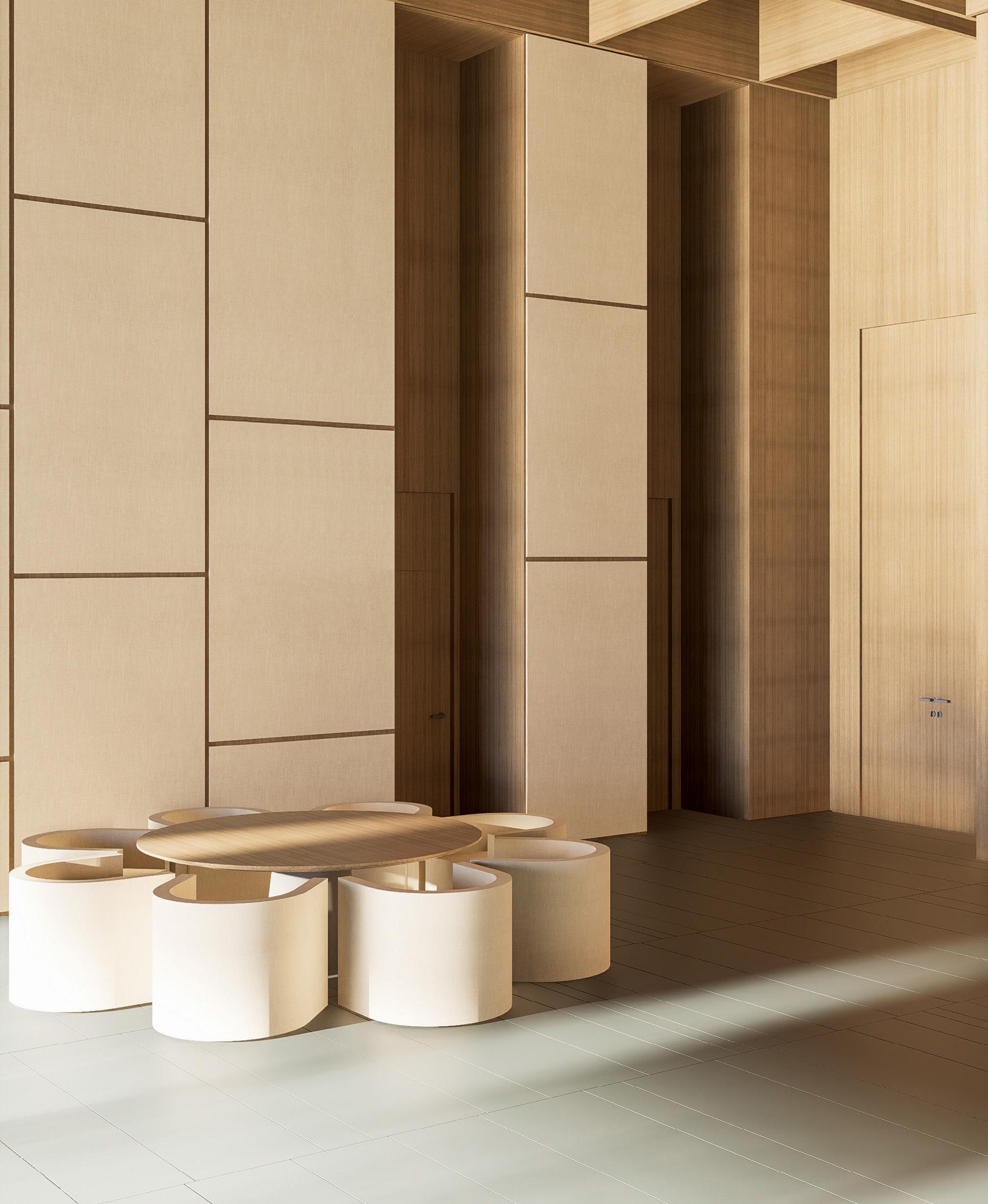 Proposta di divano cercando di integrare in un unico elemento diversi tipi di esperienze. Al centro, un’esperienza più di gruppo, mentre ai lati esperienze più individuali.