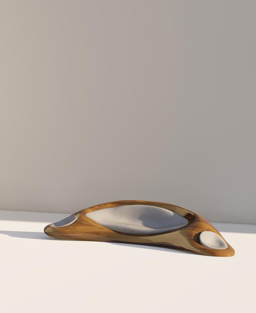 Ispirato al delicato gradiente dell’acqua, dal turchese profondo al beige sabbia, creando una serena e armoniosa fusione di colori.