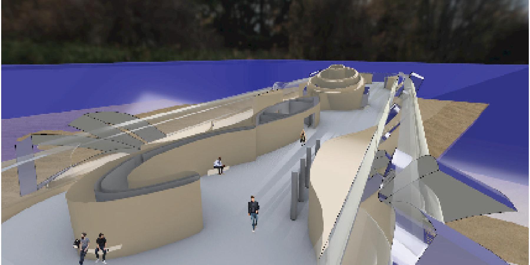 William Smith's "Strata Identified by Organized Fossils,” inpired the concept of a marine exo skelloton. The site was Batiquitos Lagoon in Carlsbad, California a coastal wetland and estuary, home to many wildlife and plant species. A site analysis was conducted which identified the problem. The site became a drylands area due to the restriction of tidal flushing caused by the construction of a nearby bridge. This led to the depopulation of wildlife and plantlife. In order to help restoration, The Lago was proposed. This museum and conservation center aimed at promoting social awareness of drylands, educating people on the local wildlife, and providing funding through visitor donations.