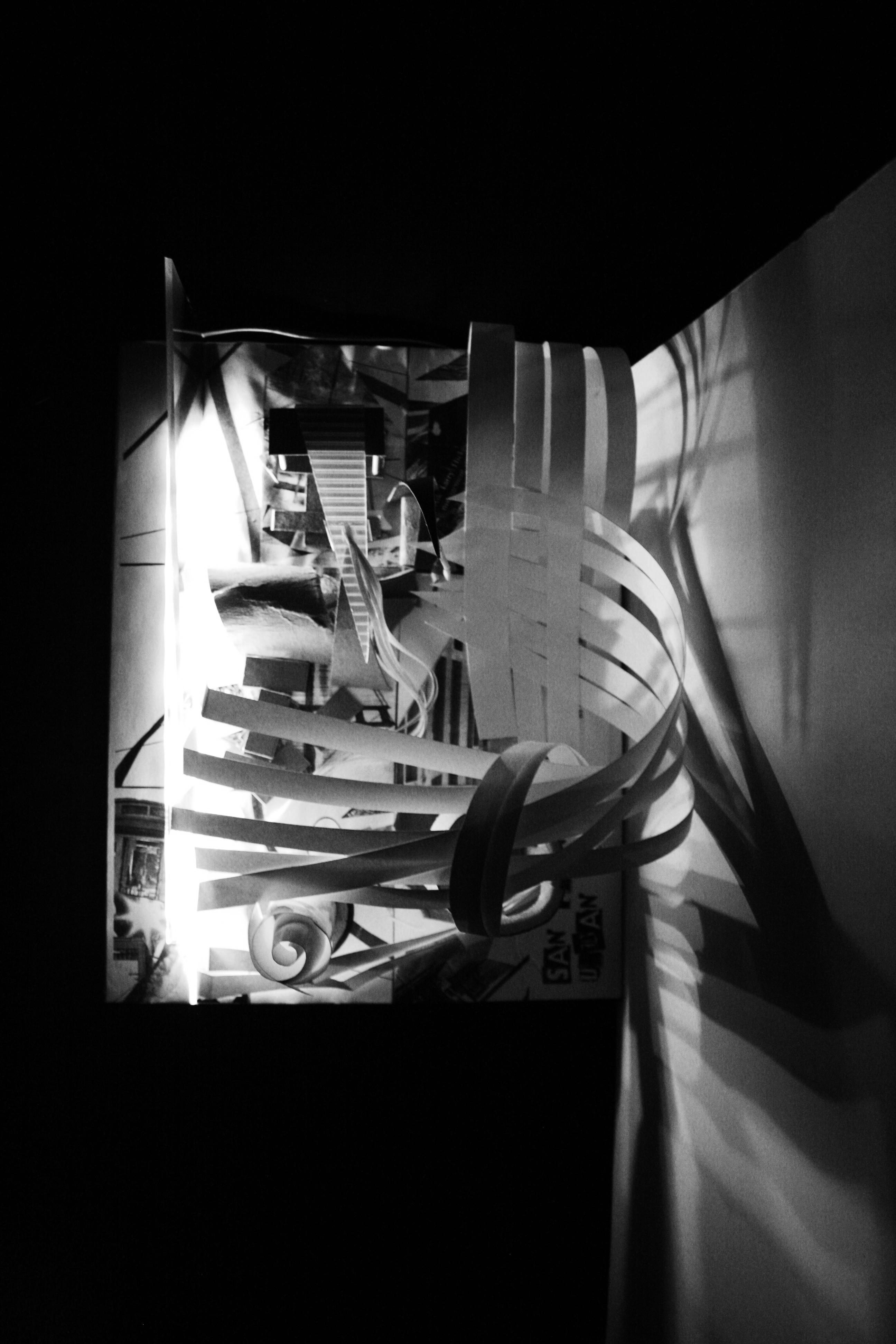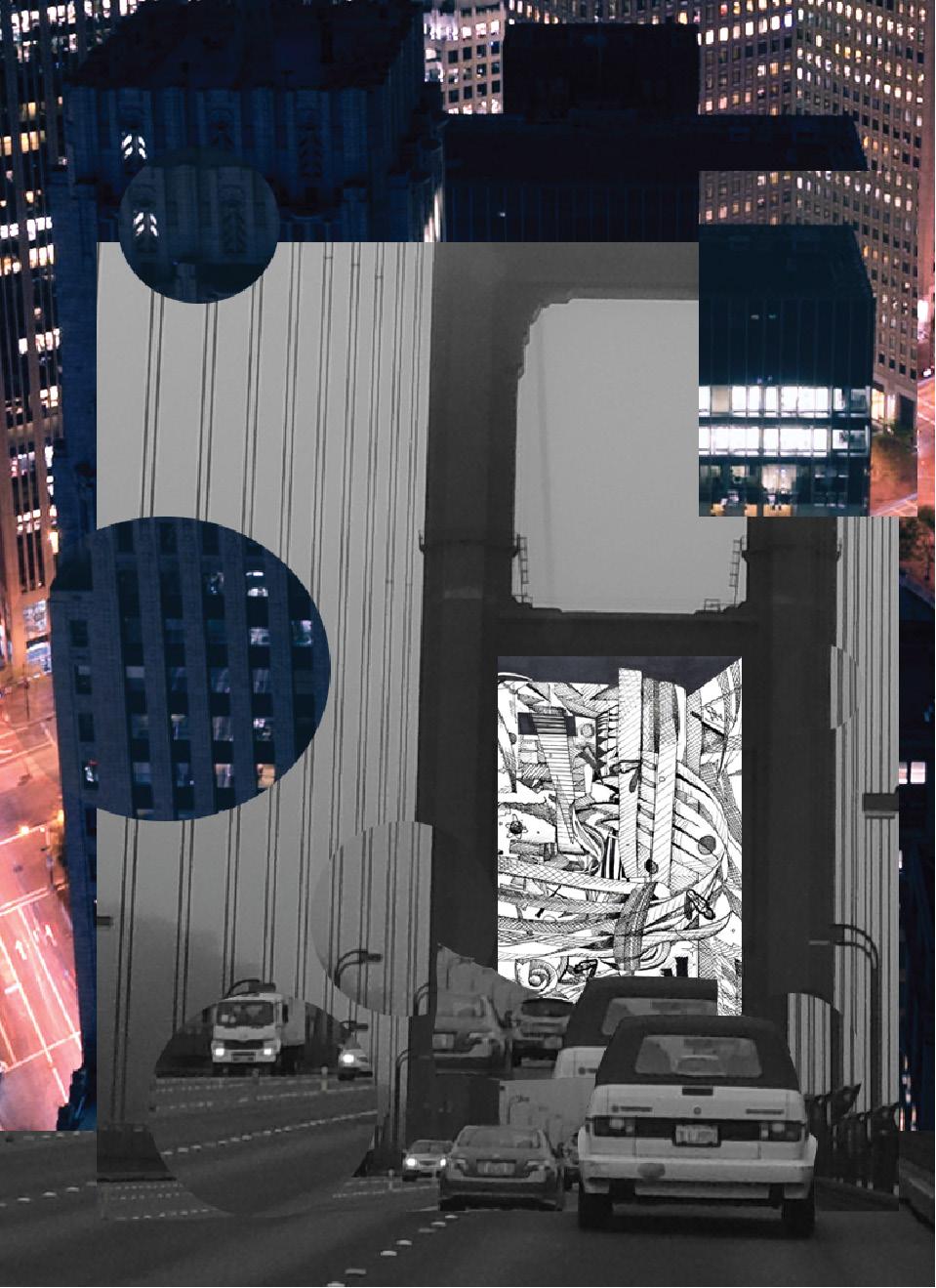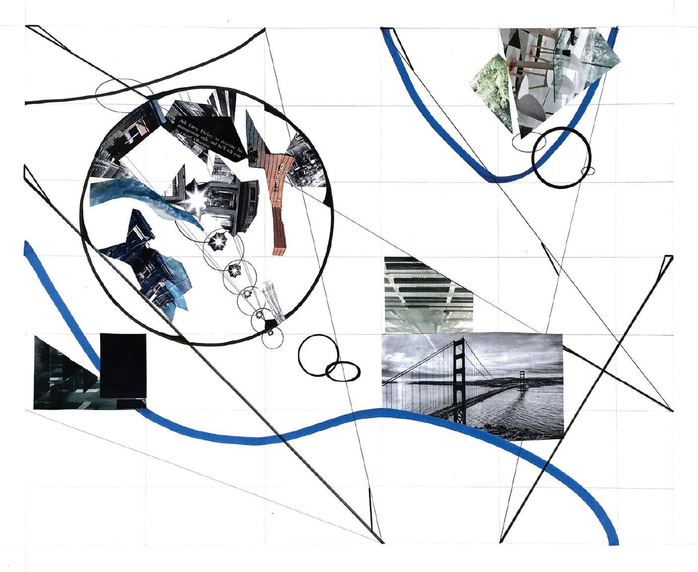 A recreation of San Francisco a spectacular city in California. This project began with the creation of an underlying grid pattern using intricateline line weights and shapes. This grid pattern gave constraints and informed the image placement. Cut outs from a magazine were then placed onto the grid patter to design a collage. Inspiration was drawn from the lines and shapes to inform my physical model that was placed on top of the collage. This transformed into my personal Urban Imagination.