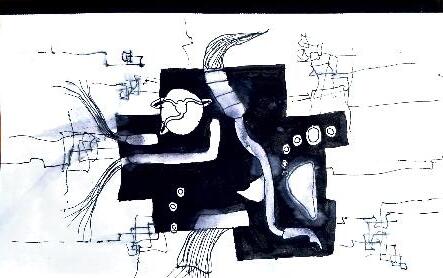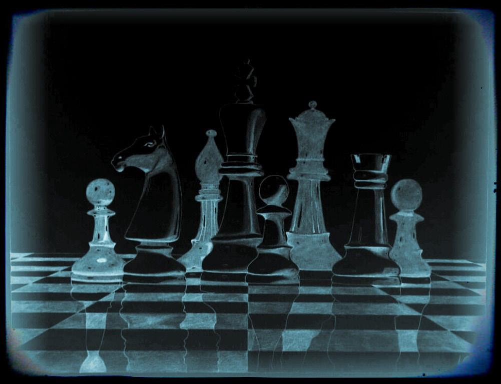 Experimenting with mixed media leads to unique creations. This design process began by studying a chess board and its components. Next, the pieces and the board were sketched alternating with both hands to create this still life. Photoshop was then used to alter the color. Lastly Pixlar, a photo application was used to add the border that surrounds the image. Beauty can be found in the game pieces and the game itself. Sometimes the king can deceive and all the pawns flock to help the king's deception.