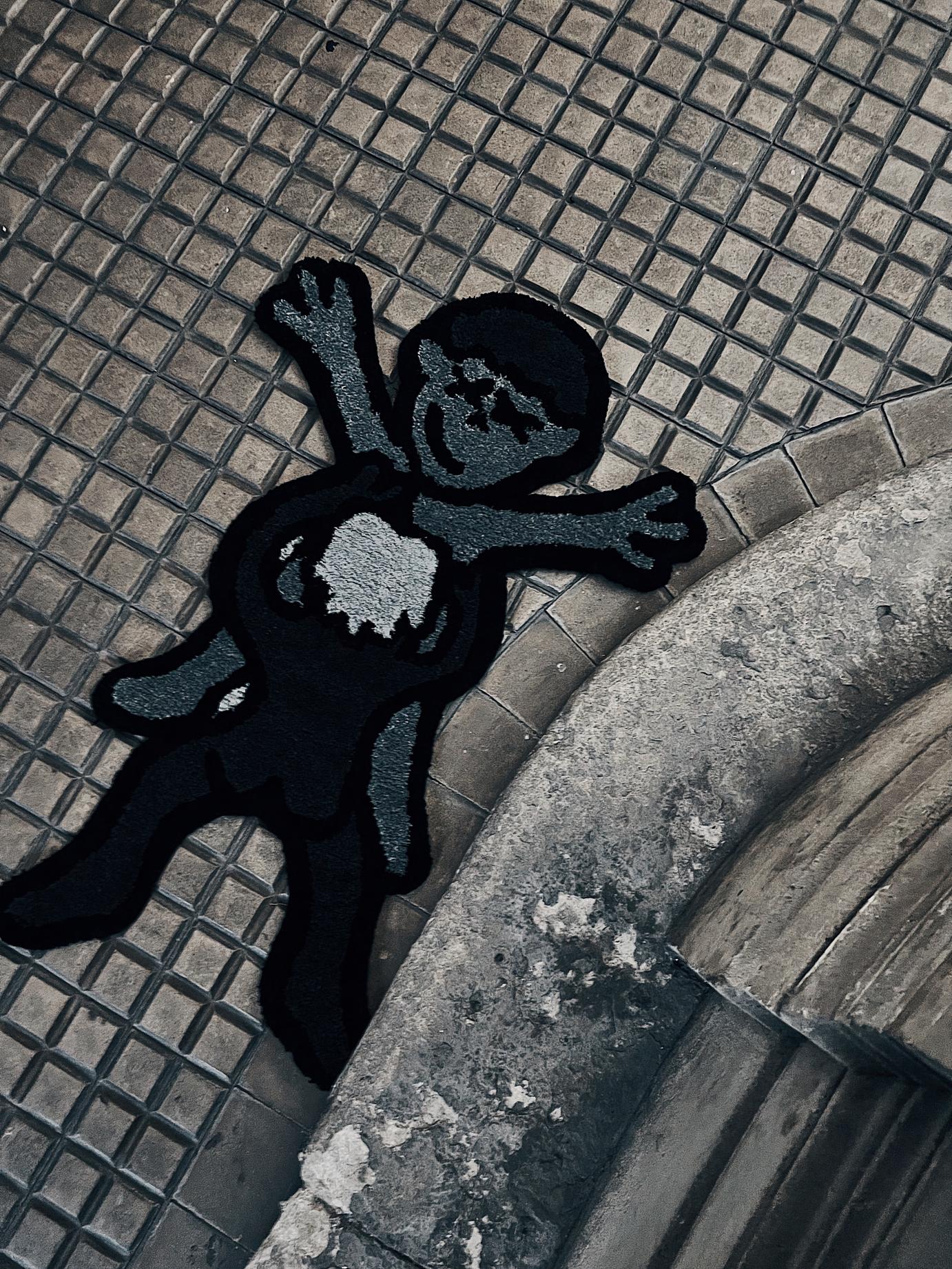 Tenture motif «PLEASURE» dans des tons gris en laine de 80 centimètres par 125 centimètres.