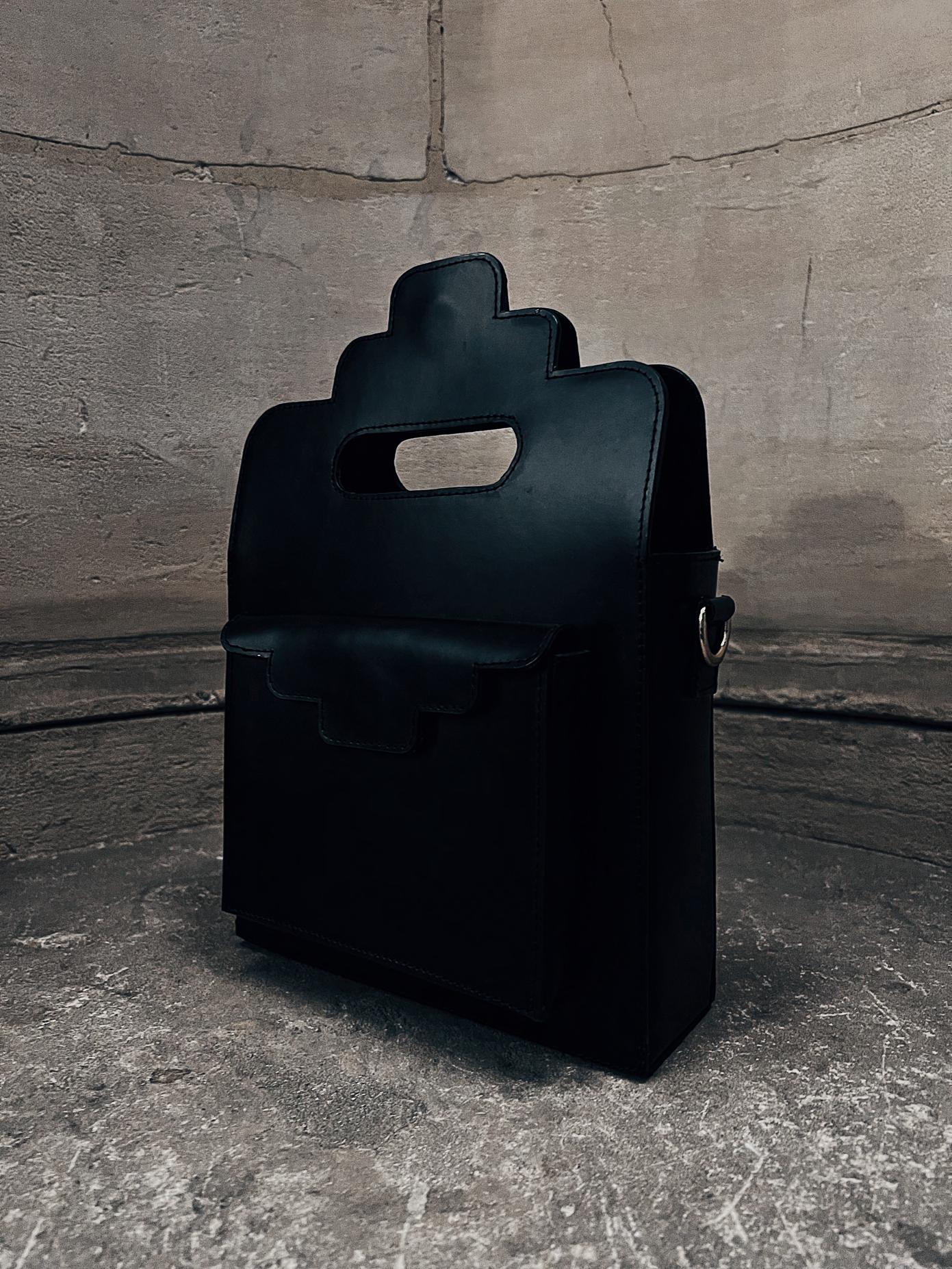 Sac porté croisé en cuir lisse bovin Box. Détail fleur de lys ton sur ton et motif royal en relief.