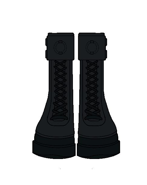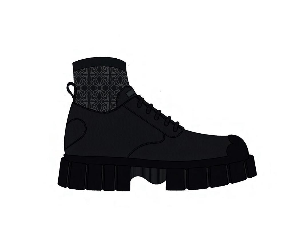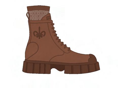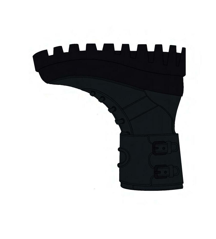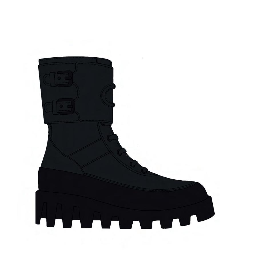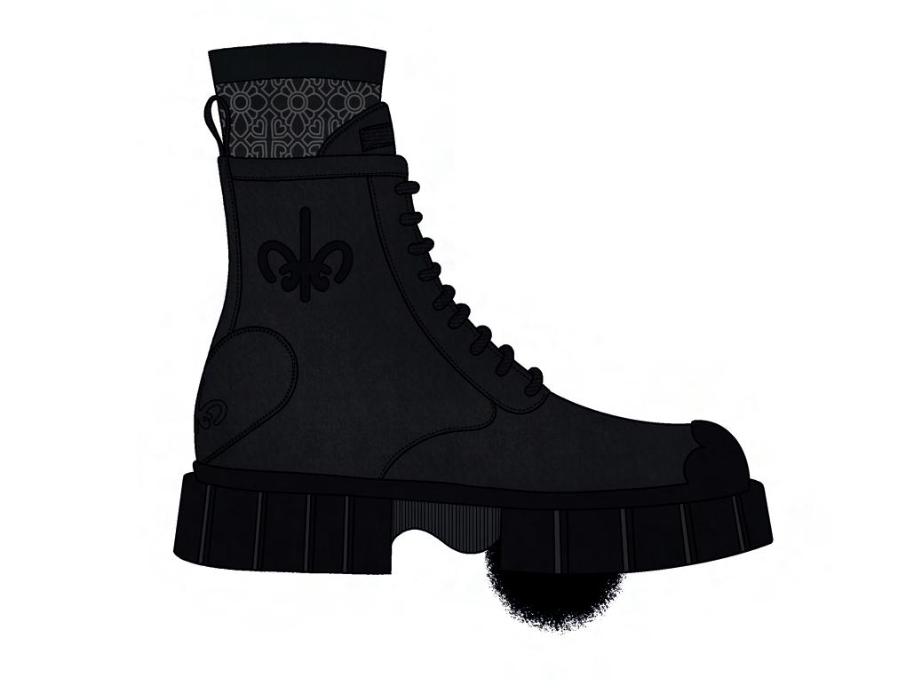 Bottes de combat en cuir brossé avec une finition brillante et une double semelle surdimensionnée.