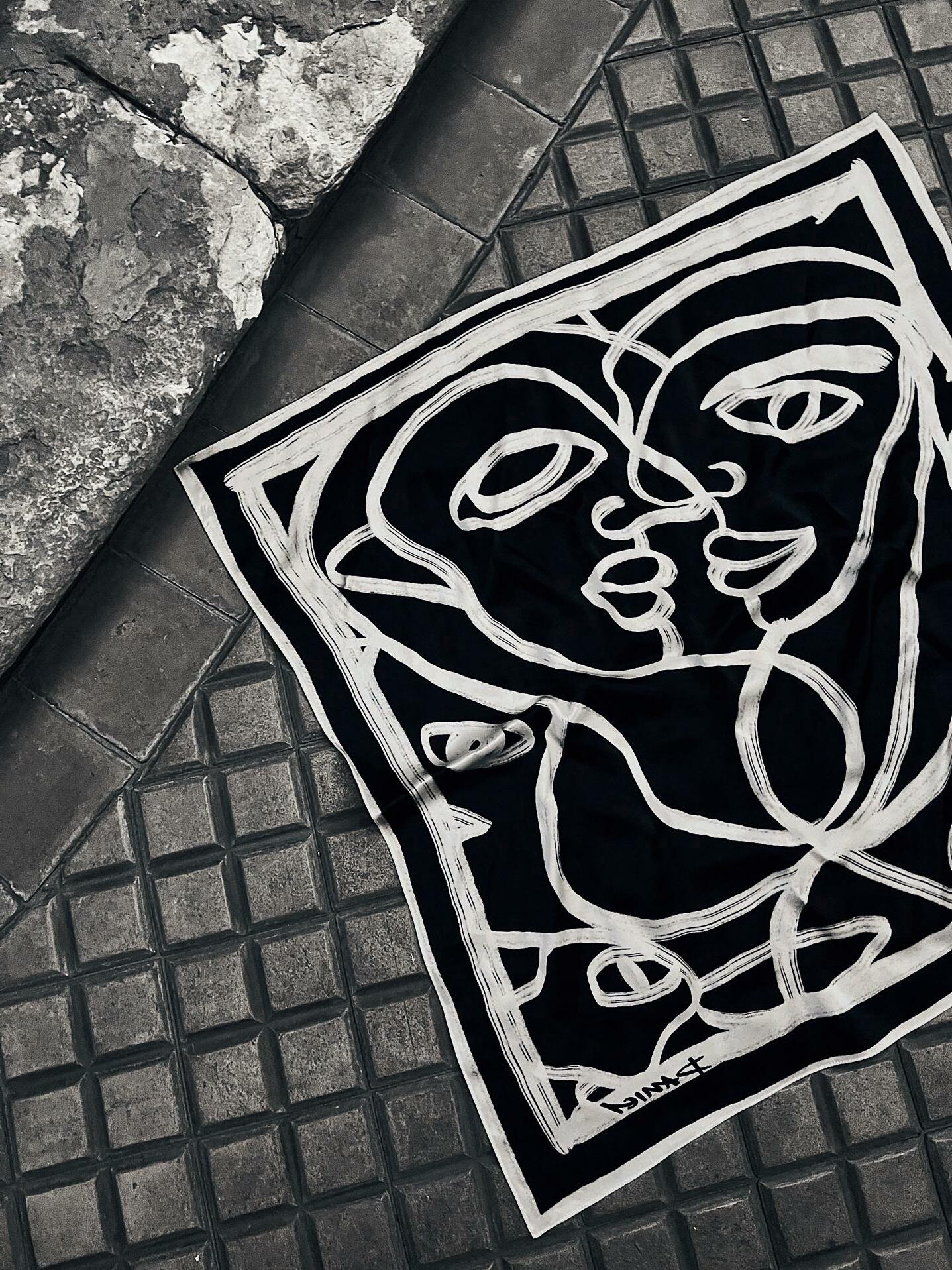 Tenture motif «PLEASURE» dans des tons gris en laine de 80 centimètres par 125 centimètres.