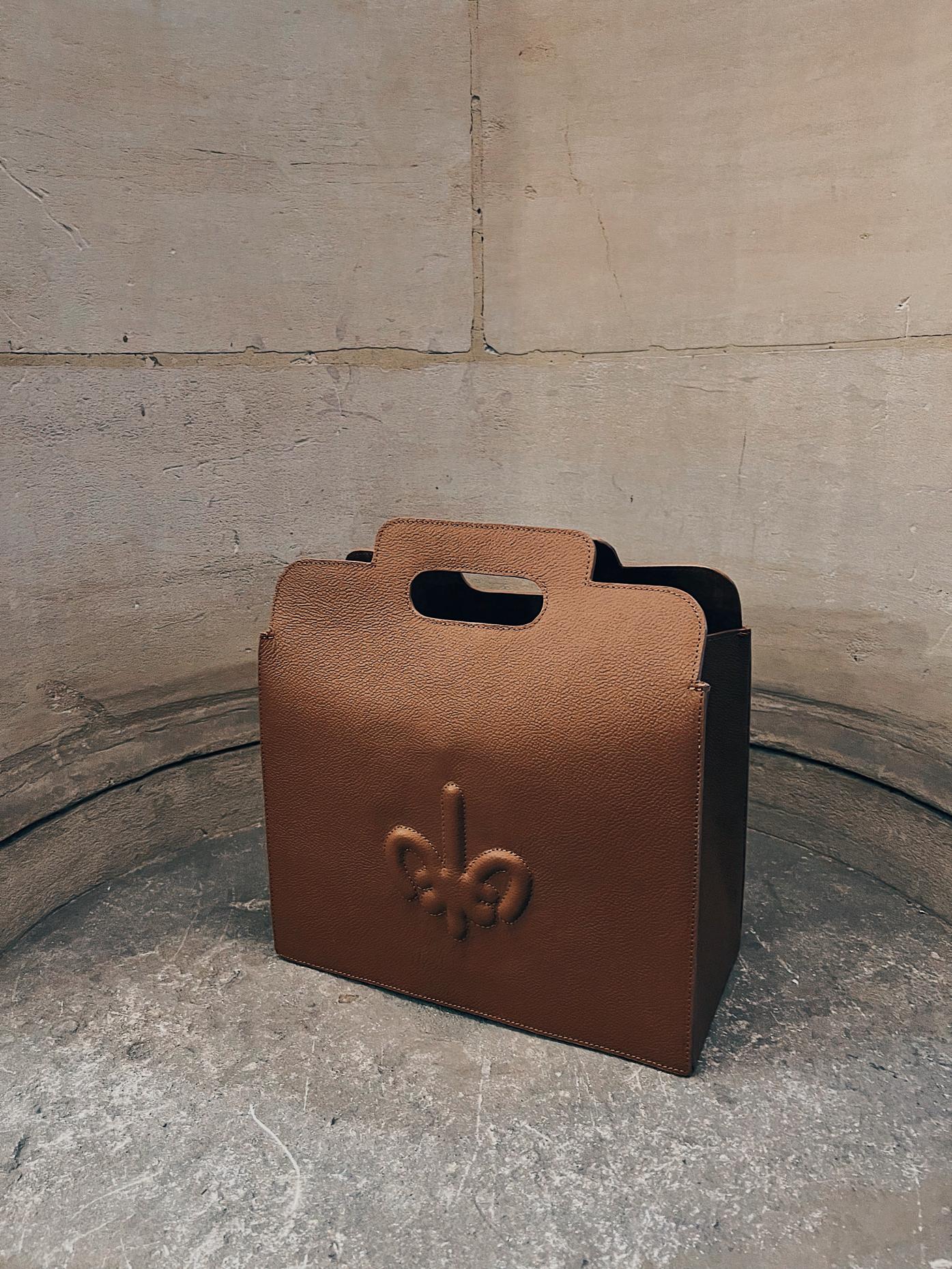 Cabas confectionné en cuir surpiqué et arbore une poche avant.