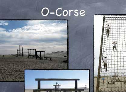 Na fase zero, o aluno tem o primeiro contato com a pista de obstáculos. O O-Corse, como é chamada, é uma pista com cerca de 15 obstáculos principais mais uns cinco outros obstáculos secundários e simples. Alguns deles são emblemáticos como o Cargo Net: uma rede de transbordo presa a uma estrutura de toras de eucaliptos estaiados, com cerca de 10 metros de altura. outros são curiosos como o dirty name (palavrão): dois cavaletes, também de toras de eucaliptos, um mais baixo e outro mais alto, onde o aluno deve passar por sobre cada uma delas. A princípio você não entende o porquê do nome do obstáculo, porém, depois que você salta e bate com a boca do estômago logo no travessão do primeiro cavalete, a primeira coisa que lhe vem à cabeça é justamente o nome do obstáculo. Mas o obstáculo mais difícil e mais cansativo talvez seja o Slide for Life. Trata-se de uma estrutura de cerca de 10 metros de altura, composta por quatro plataformas de madeira onde, a partir da última plataforma, o aluno deve deslizar por um cabo que vai do topo, estendese por uns bons 20 metros numa diagonal descendente, terminando a 2 metros do solo. O aluno escala as plataformas pela parte voltada para o mar, fazendo uma “abdominal invertida”, e deve deslizar pelo cabo inicialmente como uma preguiça e, no final da segunda fase, em “comando crawl” (sobre a corda). o problema é que o aluno está mais ou menos no meio do O-Corse, já está cansado e ainda deve escalar as plataformas para, a partir daí, deslizar pela sua vida, literalmente.