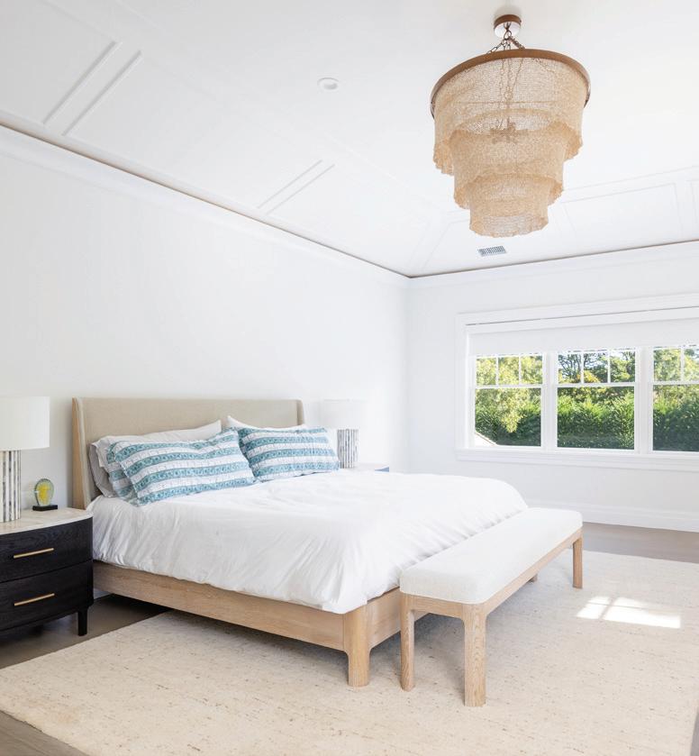 The private quarters include five gracious ensuite bedrooms, each offering generous proportions and refined finishes. The primary suite is a sanctuary unto itself, complete with spa-like bath and private sun terrace overlooking the grounds. The expansive lower level, with soaring 10’ ceilings, is designed for recreation and relaxation. A state-ofthe-art gym with full bath, sauna, spacious media lounge and theatre create the ultimate Hamptons retreat experience.