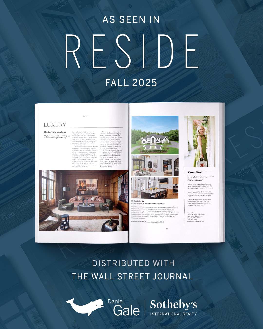 RESIDE® isn’t just a magazine—it’s a gateway to a highly targeted, luxury-minded audience. It’s also something that sets you apart from your competitors. As Daniel Gale Sotheby’s International Realty’s premier publication, RESIDE® blends exquisite property features with compelling editorial on art, design, architecture, and lifestyle trends.