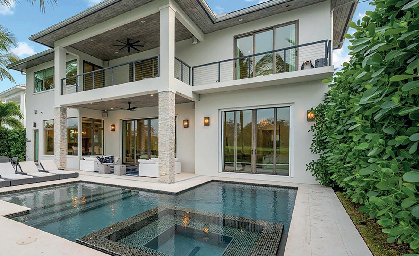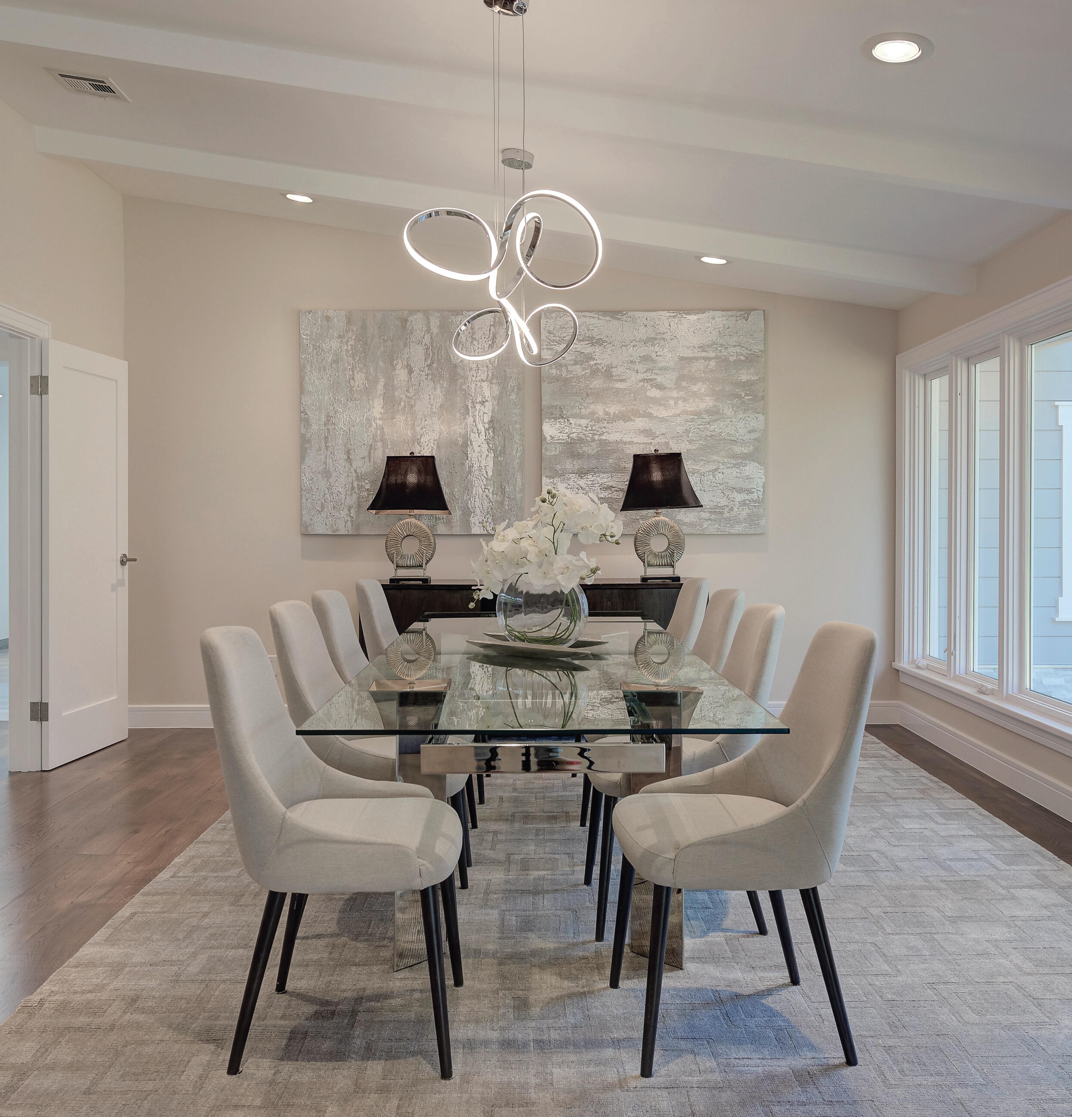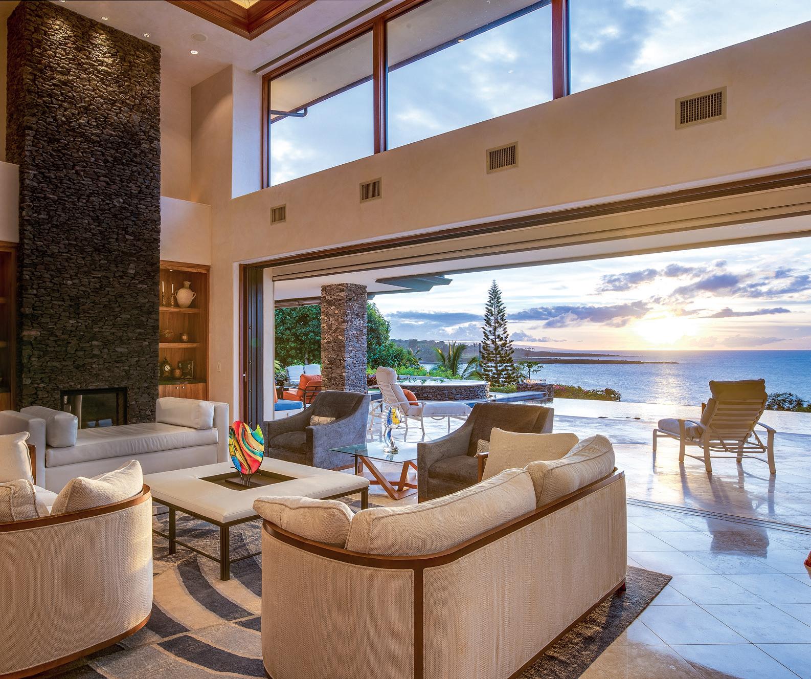 and much more. The kitchen opens to the incredible living room, which is ideal for family game nights and entertaining at its finest. No expense was spared in the amenities of this home, including the 10-seater, Gatsbyinspired movie theater. In addition, there is a fully equipped gym with a dry sauna and walk-in wine room with a 1,200-bottle capacity. The exceptional backyard also features an infinity pool with custom mosaic tile, a hot tub, putting and chipping green, extensive outdoor lighting, screened patio with gas fireplace, BBQ area, along with space and plans for a pickleball court.