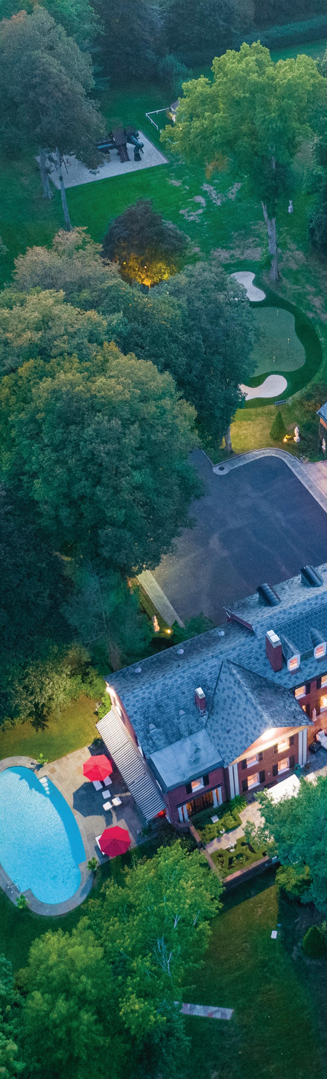 This magni cent custom-built Hampton’s Shingle-styled Estate overlooking the greens of the Nissequogue Golf Club is a rare nd. The Estate, which is comprised of the main residence, Carriage House, 2 garages that can hold 12 cars and in-ground gunite pool with pergola is an entertainer’s delight and a horse person’s or car enthusiast’s dream. Nestled on 4.07 acres of verdant lawn and lush plantings that accent di erent features of the property the residence seamlessly blends with the natural beauty surrounding it. The property is truly a tranquil retreat.