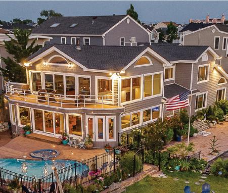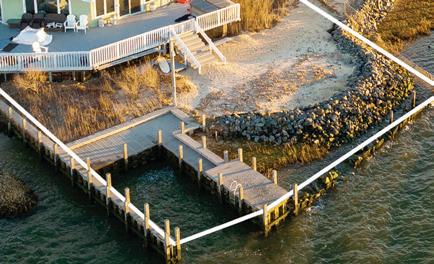 This stunning and turnkey waterfront home boasts deep-water dock with 101 ft. bulkhead, and boat slip. Bay beach access. O ering 3 bedrooms and 2.5 baths, it is wonderfully situated on ½ acre lot with a at backyard.