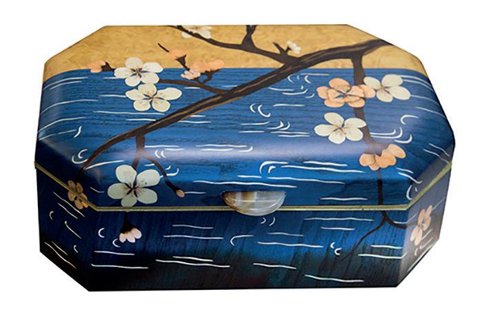 At PAD London in fall 2022, Furmanovich presented mirrors and jewelry boxes made using her signature technique, featuring evocative nocturnal skies and natural motifs. Furmanovich’s output also extends to stools and tables.