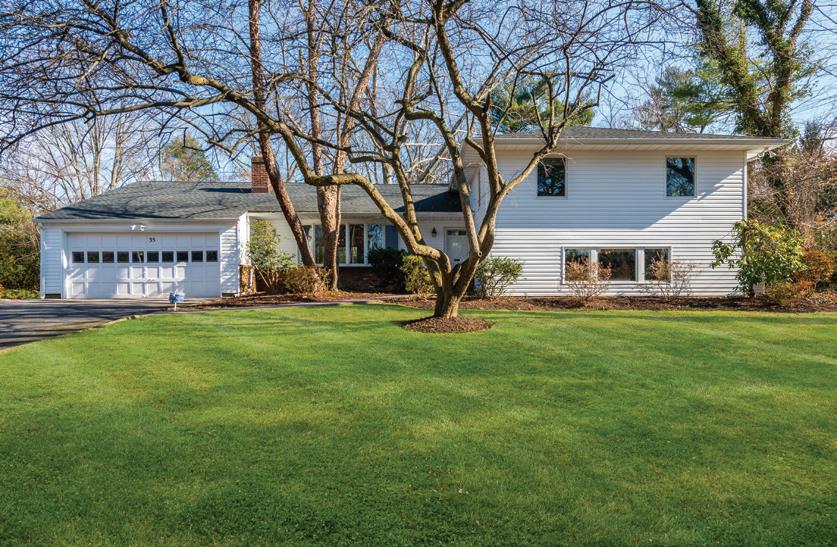 Beautiful 4-bedroom, 3-bath Hi-Ranch tucked away on a quiet cul-de-sac. This home o ers excellent privacy with many updates including newer roof, skylight, Pella sliding doors, and Nicolock stone driveway and patio. Eat-in kitchen with newer cabinetry, granite countertops, farmhouse sink, and updated appliances. Spacious 2-car garage and outside entrance on the lower level. Near LIRR, restaurants, and shopping.