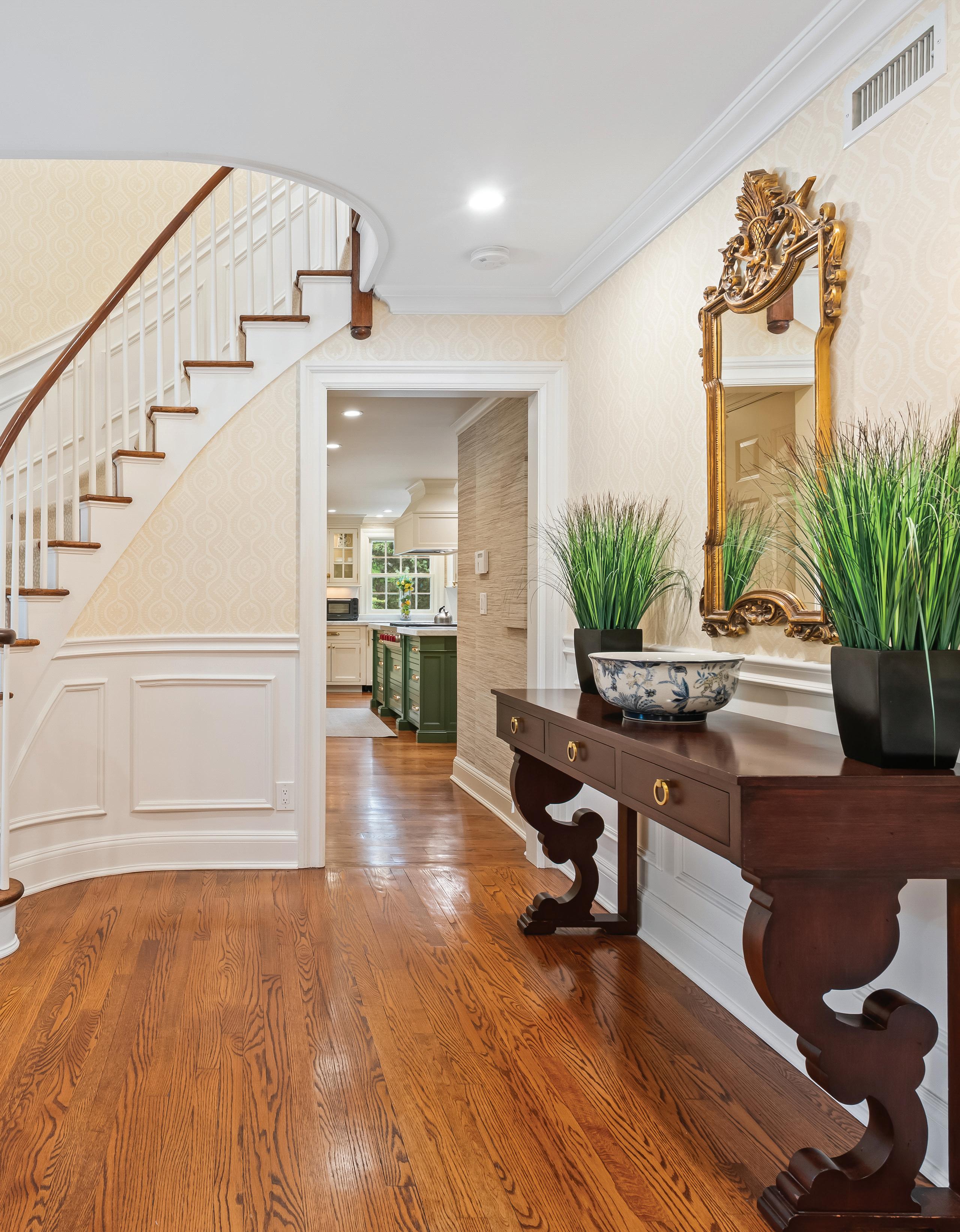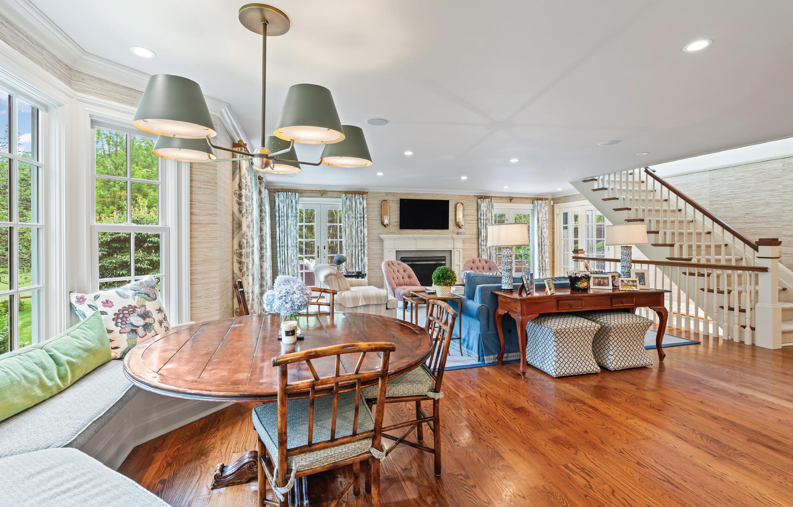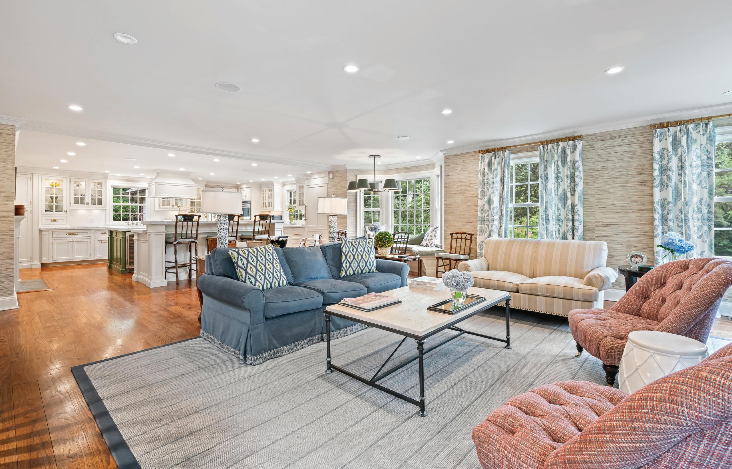 Set on over 6 acres of privacy in the heart of Muttontown, White Oak Farm is a recently renovated 5-bedroom brick Colonial manor that blends timeless architecture with refined modern updates. Mature trees, perennial gardens, and sweeping lawns create a sense of seclusion, while elegant interiors balance formal and everyday living. The marble fireplace in the sunlit living room, French doors in the formal dining room, and a richly paneled library offer classic character. At the center, the chef’s kitchen with custom cabinetry, marble counters, and top tier appliances flows into a breakfast nook and expansive family room, creating a warm gathering space filled with natural light.