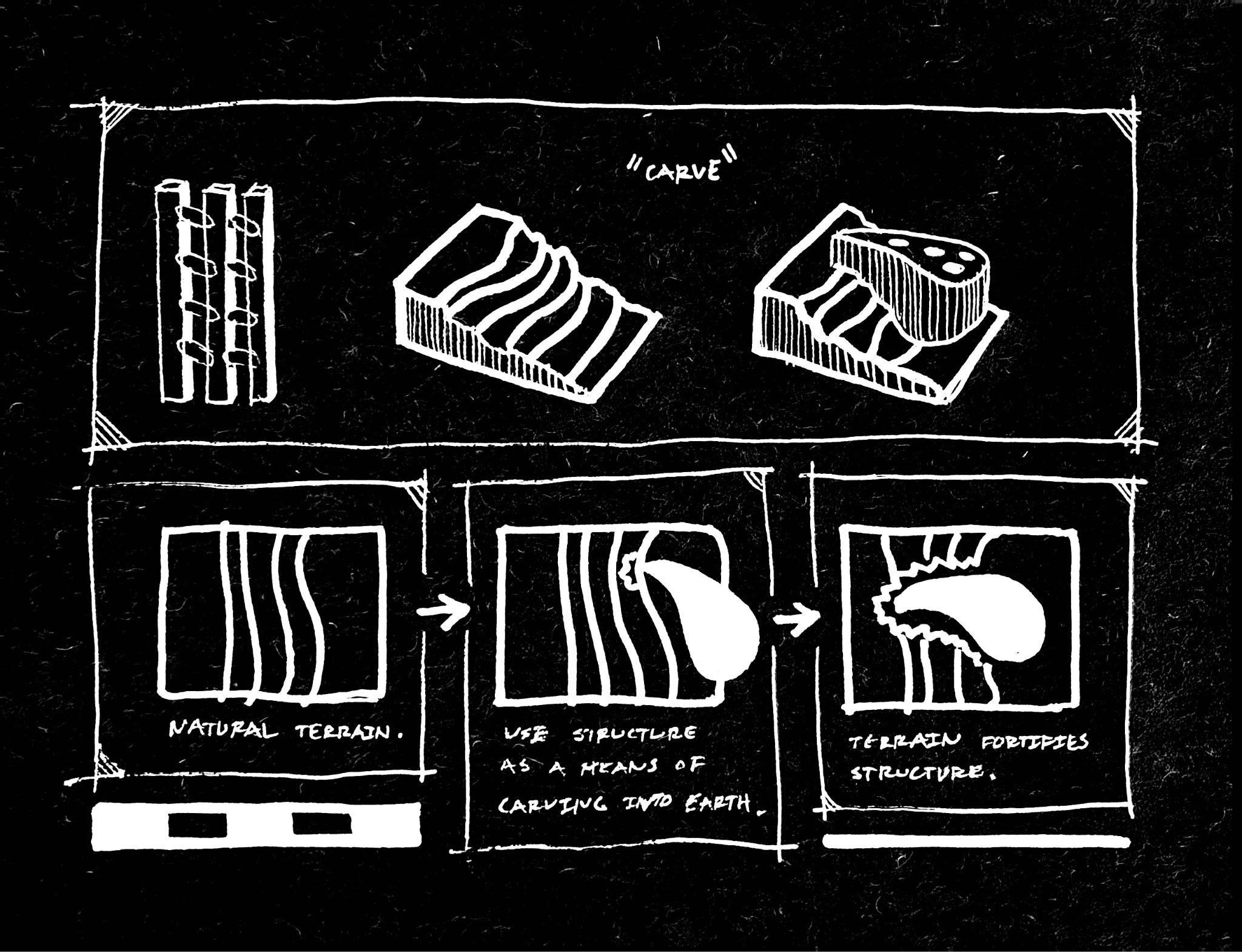 When designing the courthouse, I wanted two things to be clear in the the design. Firstly, the building needed to be imbedded into the natural terrain, to show stability and a solid foundation. The courthouse needed to represent unmoving justice in the fluid state of politics.