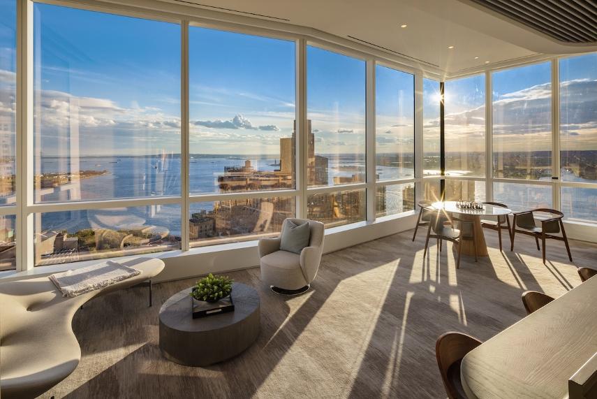 The building soars 500?above Lower Manhattan and contains 90 elegant 1-to-4-bedroom homes by design visionariesFXCollaborativeand Deborah Berke of TenBerke