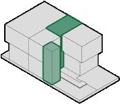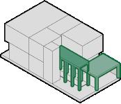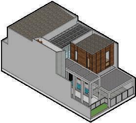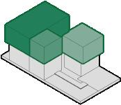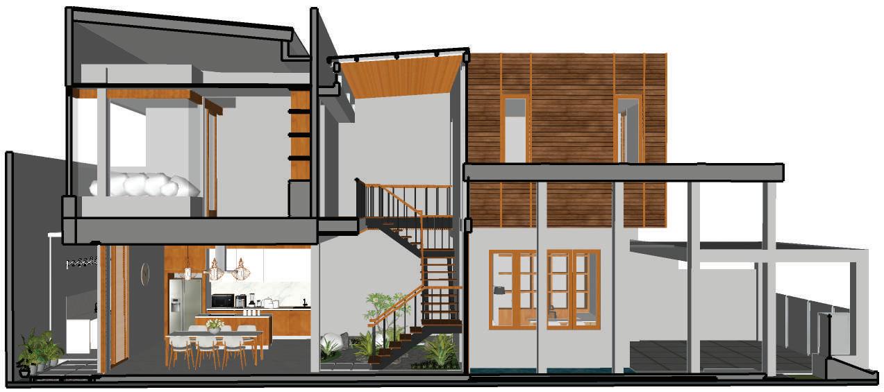 Bangunannya akan dibagi menjadi 2 massa, rumah utama dan rumah orang tua. Rumah orang tua memiliki luas lantai yang lebih kecil dibanding rumah utama dan dapat disewakan. Oleh karena itu, bentuk massa harus unik dan memiliki privasi yang tinggi.