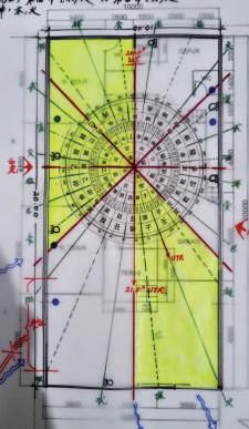 Tapak ini dibagi menggunakan sumbunya dan sebagai hasilnya, tapak terbagi menjadi 4 area.