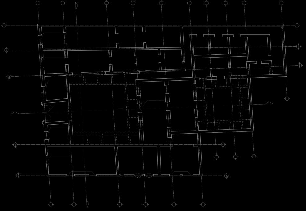 Las zonas interiores están compuestas por formas cuadrangulares no regulares; la proporción manejada es de 1/9 para las formas cuadrangulares menores, en función a los patios de distribución central; las rectangulares varían entre los ¾ y ½ de una de las dimensiones del cuadrangular mayor, generando espacios regulares modulares.