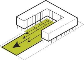 Cross Ventilation is created through the singleloaded corridor, which allows air to flow from the balcony to the corridor. Each of the windows is operable, which allows the inhabitant greater control of their unit’s ventilation.