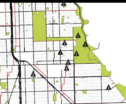 Sidewalks were added in order to connect the main neighborhood nearby, the Music box foundation, the Stony Island Art Bank, and our philharmonic together. The bike lane is located between the sidewalk, landscape, and street parking, providing a safer space for the sidewalk and isolating the site from noisy car lanes.