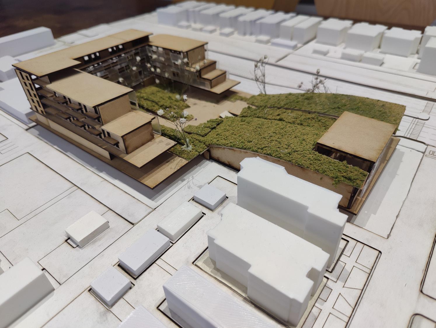 Affordable housing, as the resident’s nest, is placed above the forest, wrapping the central greenspace in the inside. The overlapping public roof garden and units make the interior of the residence full of communication opportunities. The nest is wrapped in layers to become a warm space, with leaves shading to provide a suitable space for lingering.