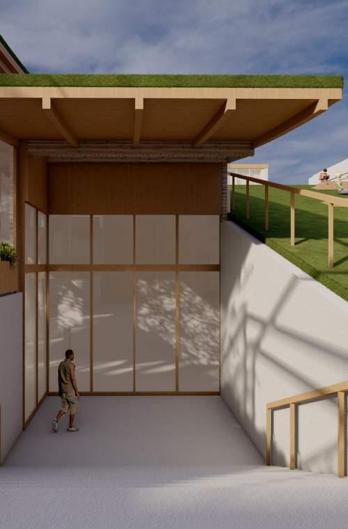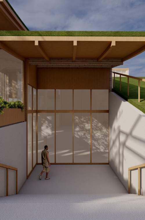 Project GOMILA utilizes rain collection, green roof, and cross ventalation to achieve sustainability goals and adapt to the local environment. The sunroof and shading also ensure adequate light while keeping the temperature right.