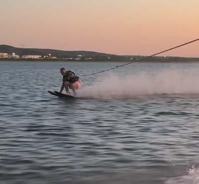 A FONDO. Mati Cravero, sin auto disponible, aceleró una motito de agua…en fin!