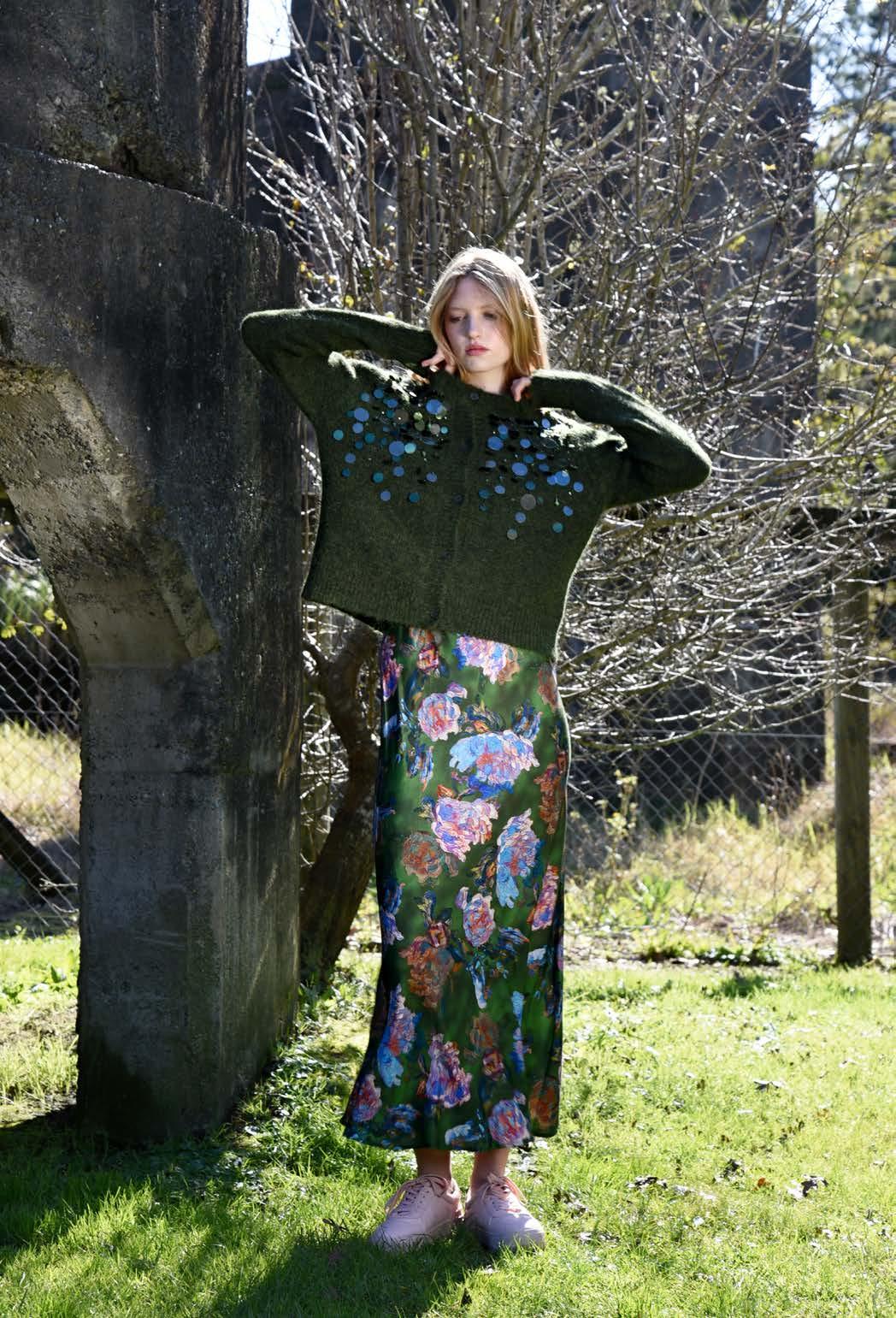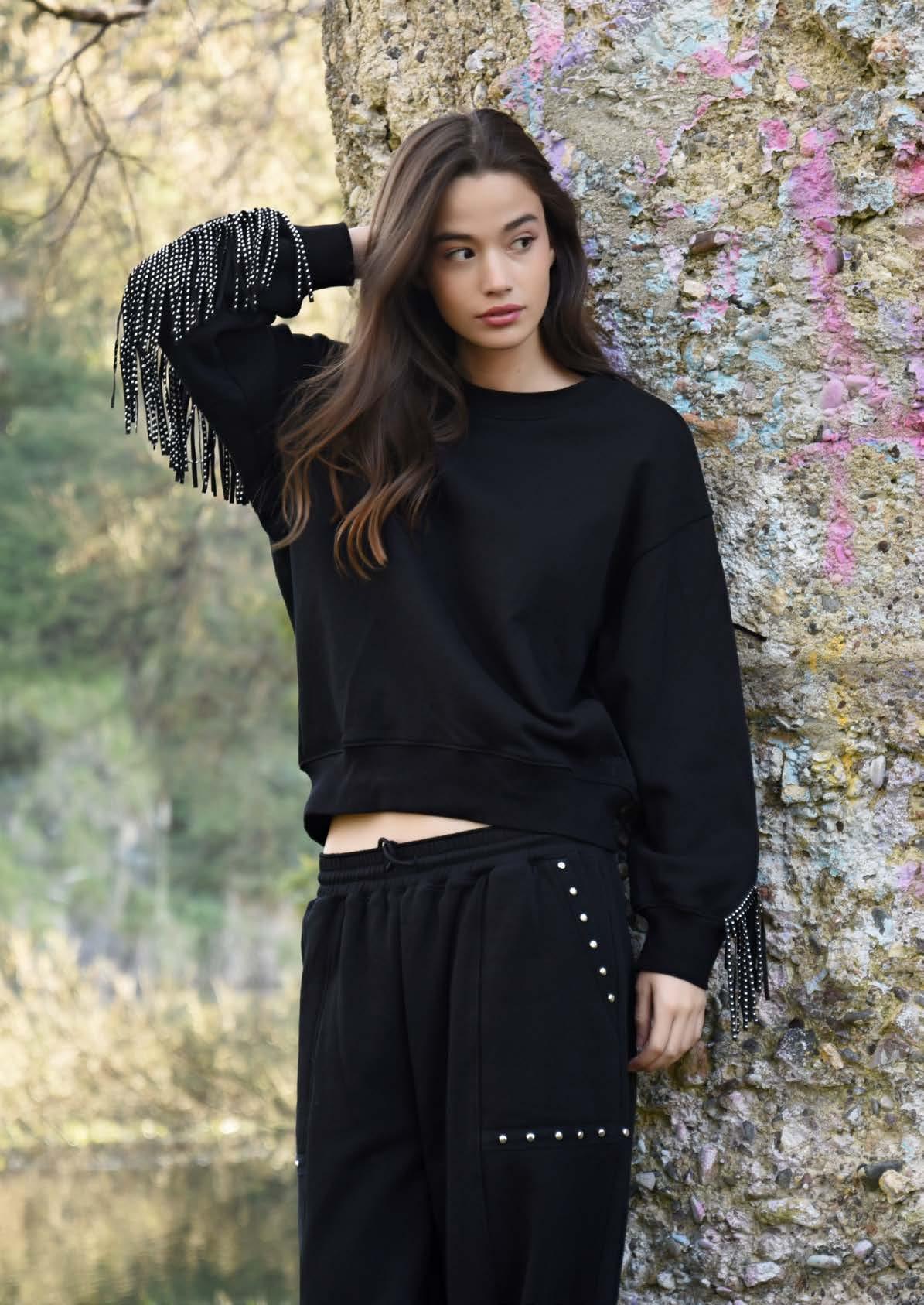 SHINY SIDE UP EMBELLISHED WOOL BLEND KNIT