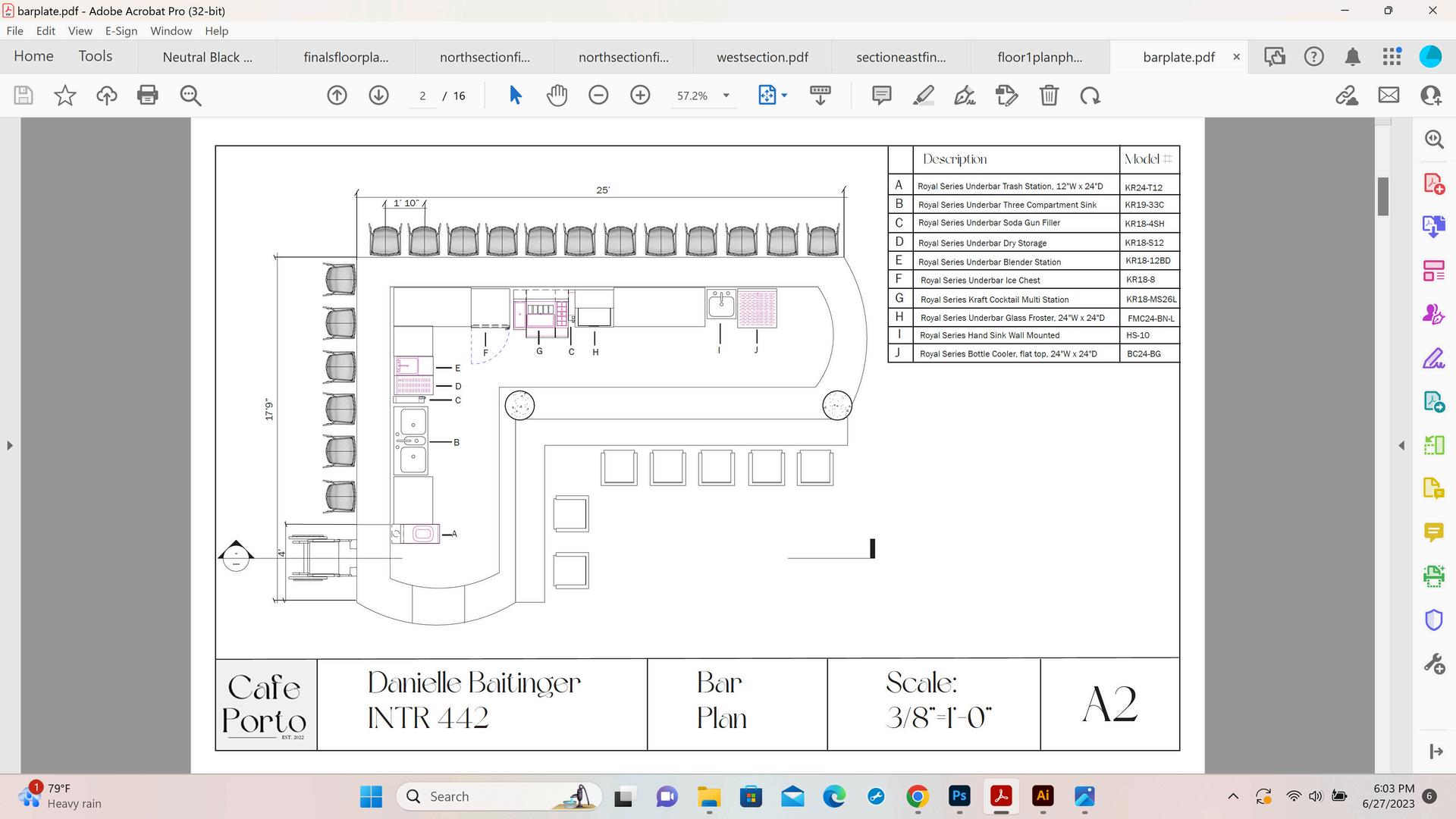 Updated furniture plans and labeled items in Revit