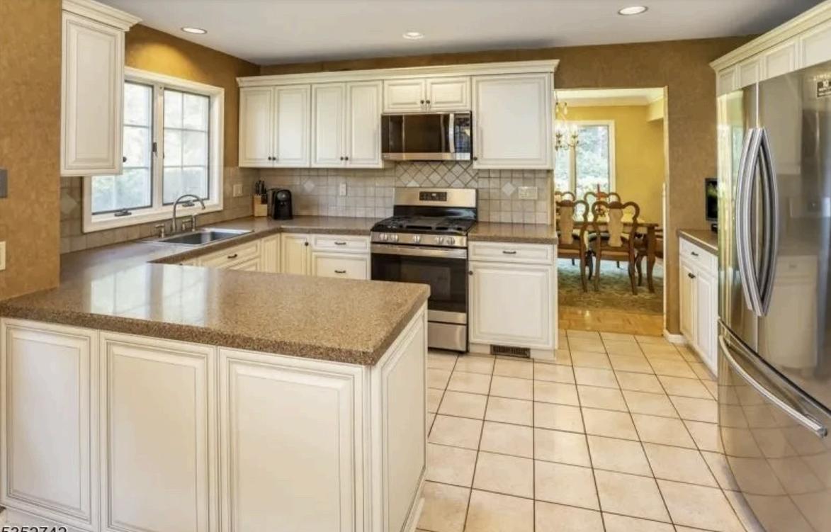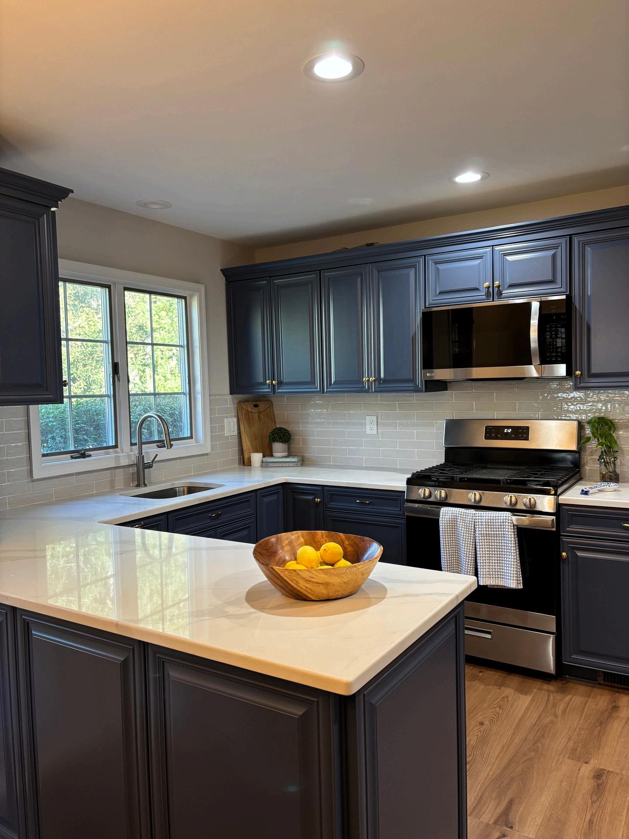 transformed my client’s kitchen through new counters, backsplash, sink, floors, and cabinet colors