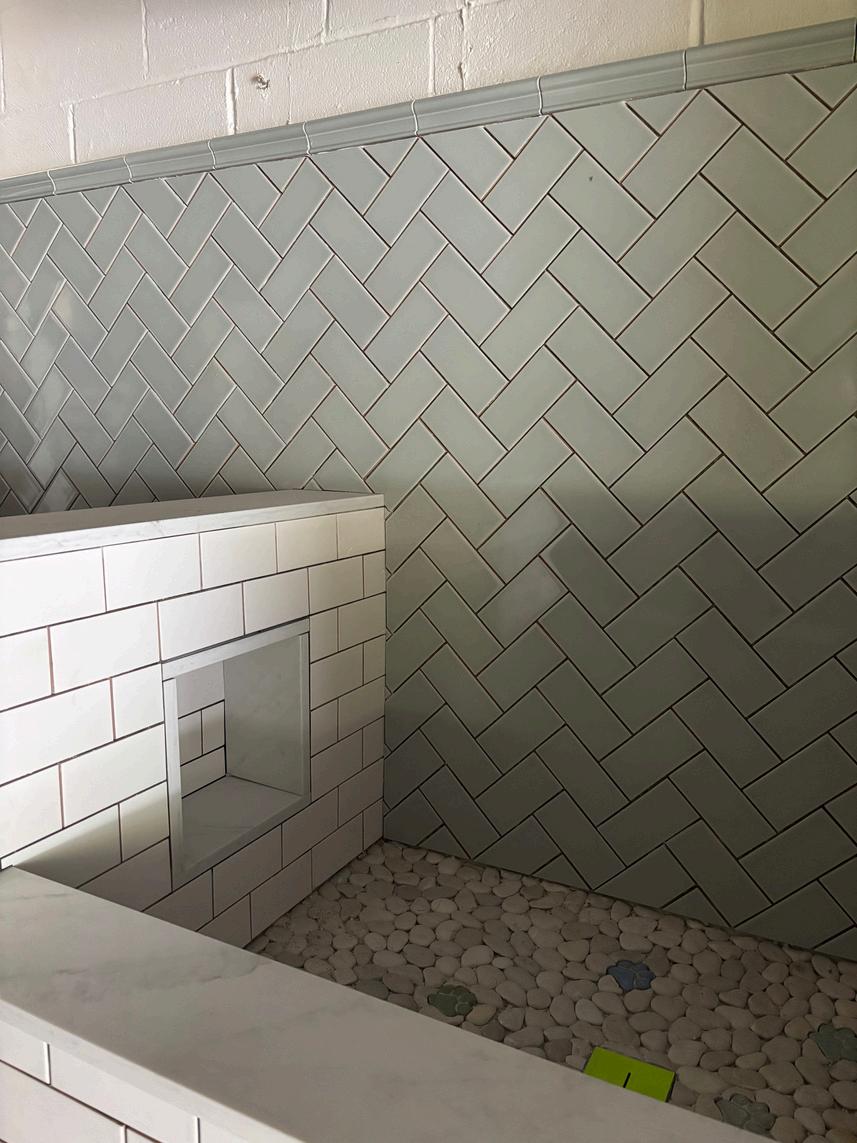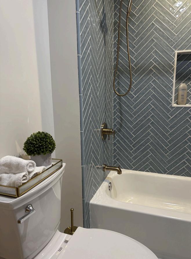 incorporated a pop of color through wall tile