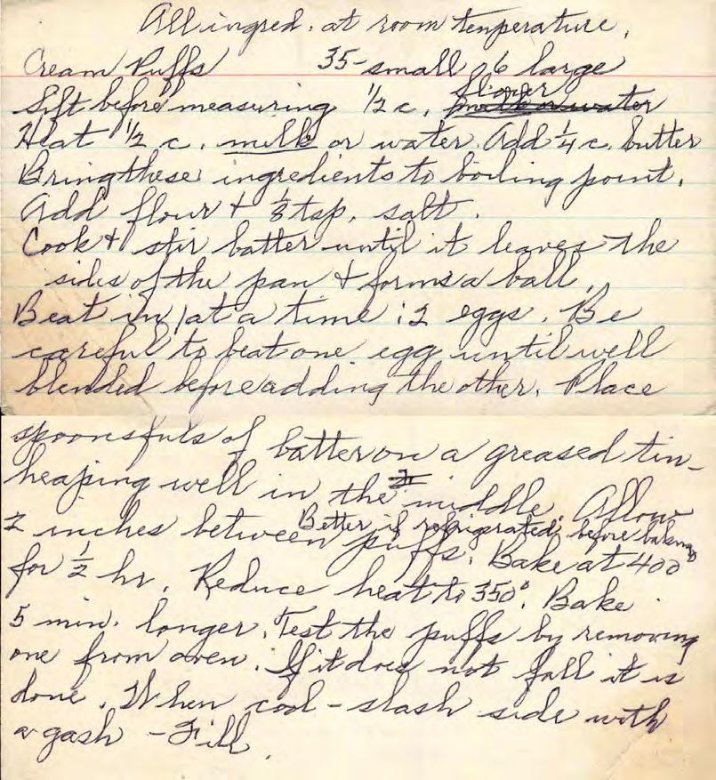 Gladys Oser’s Scroodle recipe, copied by Pat McCoy Oser