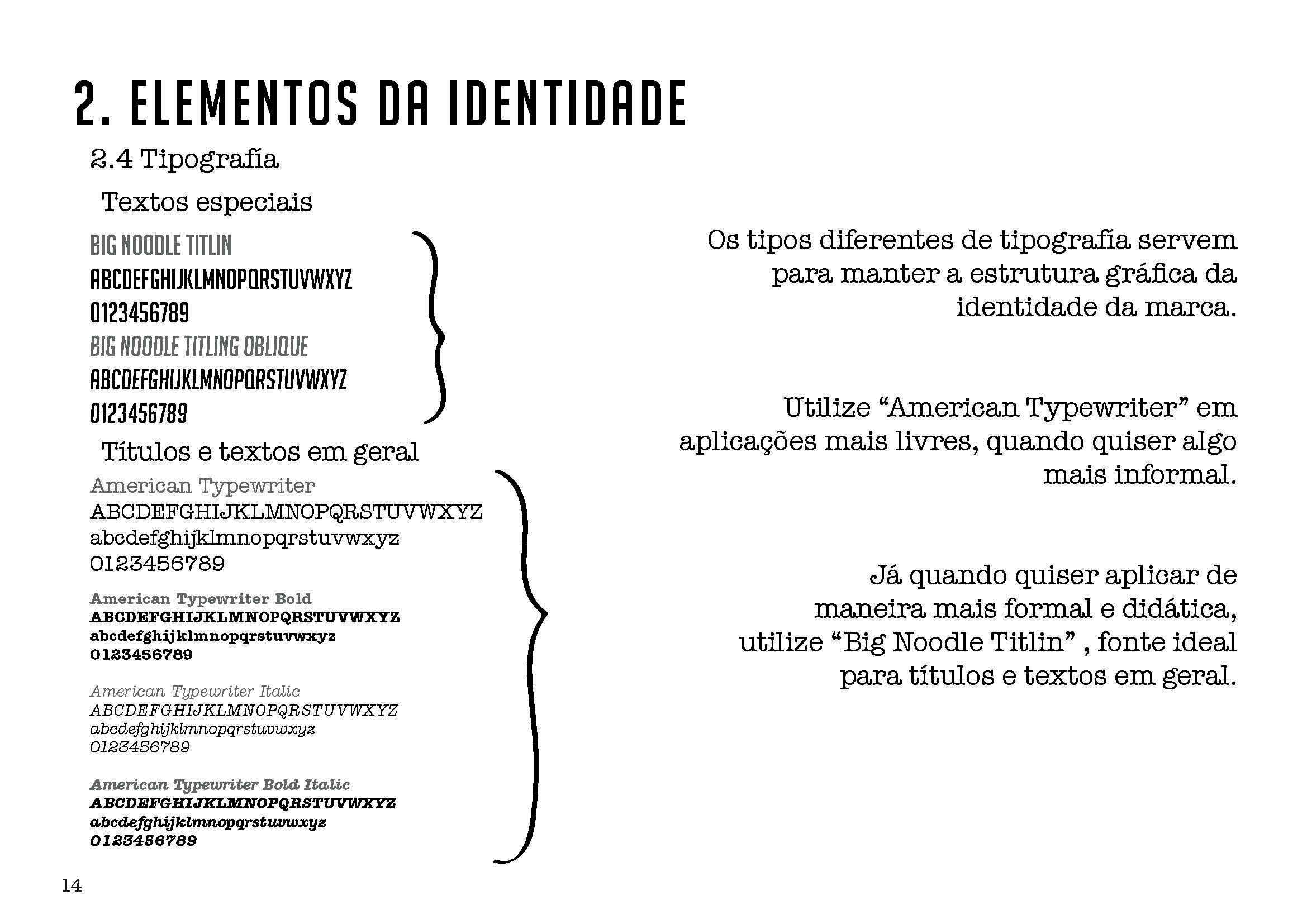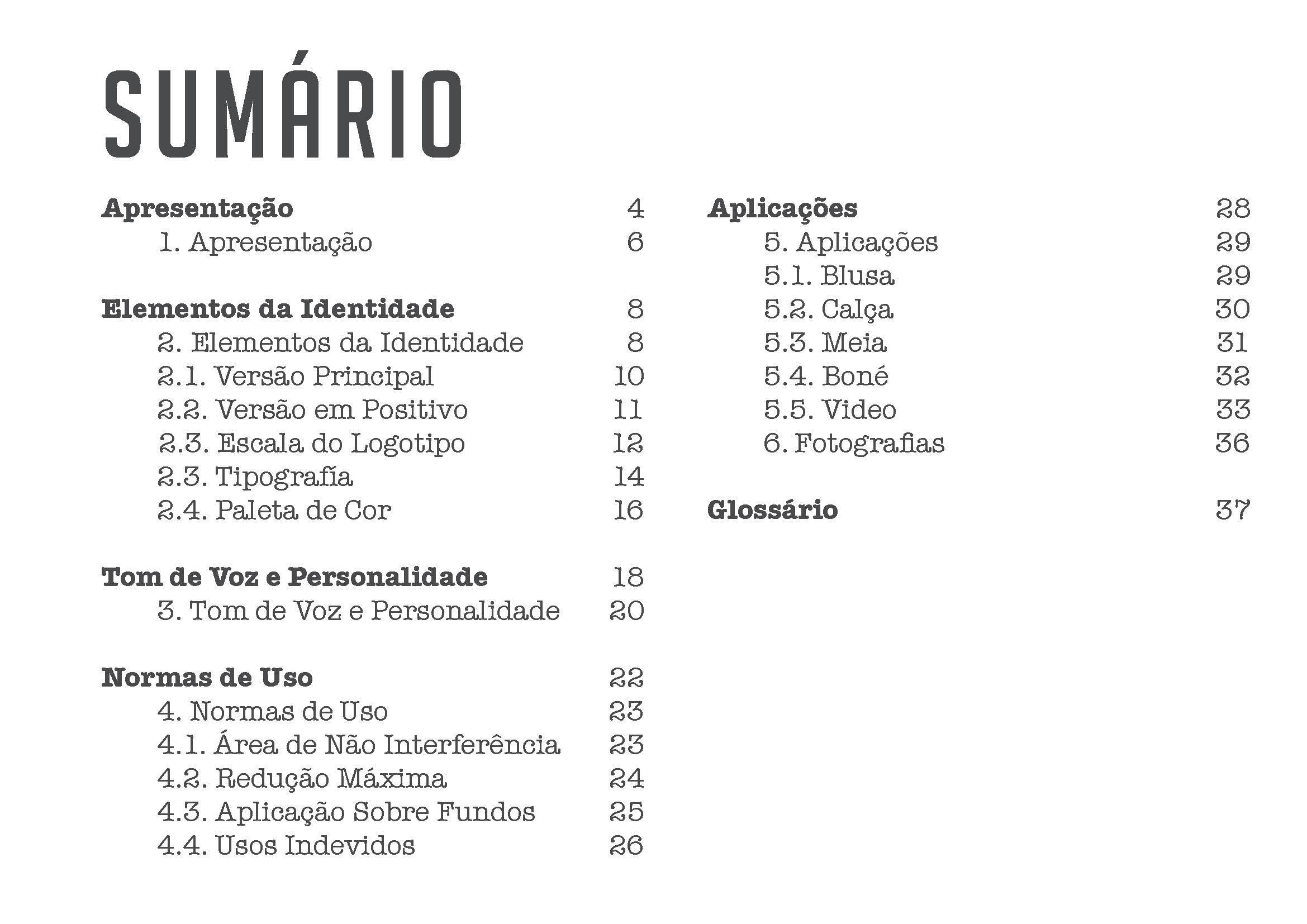 6.6.6. Evidências Físicas (para serviço) ......... 114 6.6.7. Promoção (linhas gerais) ................ 115 6.7. Dimensões de qualidade a serem observadas (para serviço) .................. 115 6.8. Hiatos de qualidade a serem observados (para serviço) ............................ 117 7 ESTRATÉGIAS DE MARKETING . . . . . . . . . . . . . 118 7.1. Objetivos de marketing ................ 119 7.2. Estratégias para o mix de marketing ..... 119 8 . DESENVOLVIMENTO DA MARCA . . . . . . . . . . . 121 8.1 Pesquisa de referência ................. 122 8.1.1 Descritivo de Pesquisa ................... 122 8.1.2 Moodboards ........................... 125 8.2 Sistema de identidade ................. 125 8.2.1 Identidade nuclear e Identidade expandida . 127 8.2.2 Proposta de valor (benefício funcional, emocional e de auto expressão) .............. 128 8.3. Personalidade da marca (arquétipos) ..... 129 8.4 Vocabulário visual e “tom de voz” ........ 130 8.6. Aspectos multissensoriais da marca ...... 131 8.7. Manual da marca ...................... 131 9. Plano Estratégico de Comunicação . . . 159 9.1 Objetivos de comunicação .............. 160 9.1.1. Objetivo principal ....................... 160 9.1.2. Objetivos por público alvo do plano de comunicação: ........................... 160