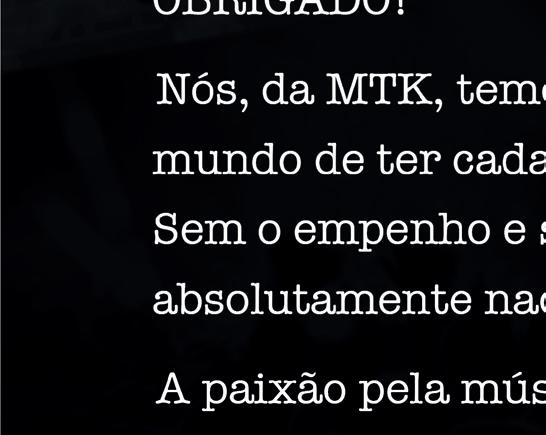 Imagem 22: Referência de tom de voz - Humor . 123 Imagem 23: Referência audiovisual ............ 124 Imagem 24: Moodboard da MTK .............. 125 Imagem 25: Moodboard Interação ............. 166 Imagem 26: Moodboard Autenticidade ......... 166 Imagem 27: Moodboard Música ............... 166 Imagem 28: Exemplo da linha editorial “Exclusividade” no Instagram ................. 178 Imagem 29: Exemplo da linha editorial “Informativa Música” no Youtube .............. 178 Imagem 30: Exemplo da linha editorial Interação no Twitter ......................... 179 Imagem 31: Exemplo da linha editorial “Informativa Música” no Facebook ............ 179 Imagem 32: Carta que será entregue a todos os colaboradores da MTK como motivação para o novo ano. ............................ 188 Imagem 33, 34, 35 e 36:Kit para o influenciador com camisa, caixa de som e um recado. ........ 189 Imagem 37: Teaser para o primeiro lançamento . 189 Imagem 38, 39 e 40: Apresentação dos artistas que fazem parte da MTK .............. 190 Imagem 41: Post 5 - Pre save (direcionando para landing page.) ............. 191 Imagem 42: Teaser da música ................. 191 Imagem 43: Desafio dos fãs .................. 192 Imagem 44: Post com interação ............... 192 Imagem 45: Instagram Story com caixa de perguntas ............................... 197 Imagem 46: Post Instagram: Interação ......... 199 Imagem 47: Post Instagram Concurso Cultural .. 201 Imagem 48: Post de divulgação do álbum ..... 203 Imagem 49: Stories de divulgação do evento .. 205