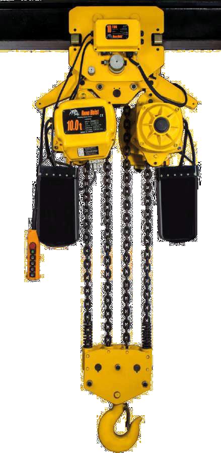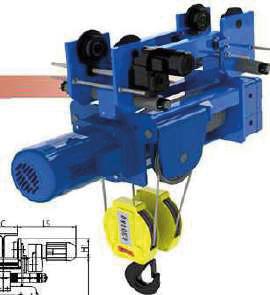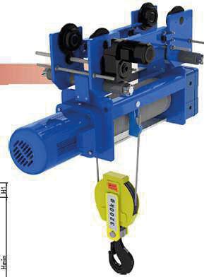 Poliplasto eléctrico de cable de acero. Mono riel con 2 caídas y gancho de acero forjado